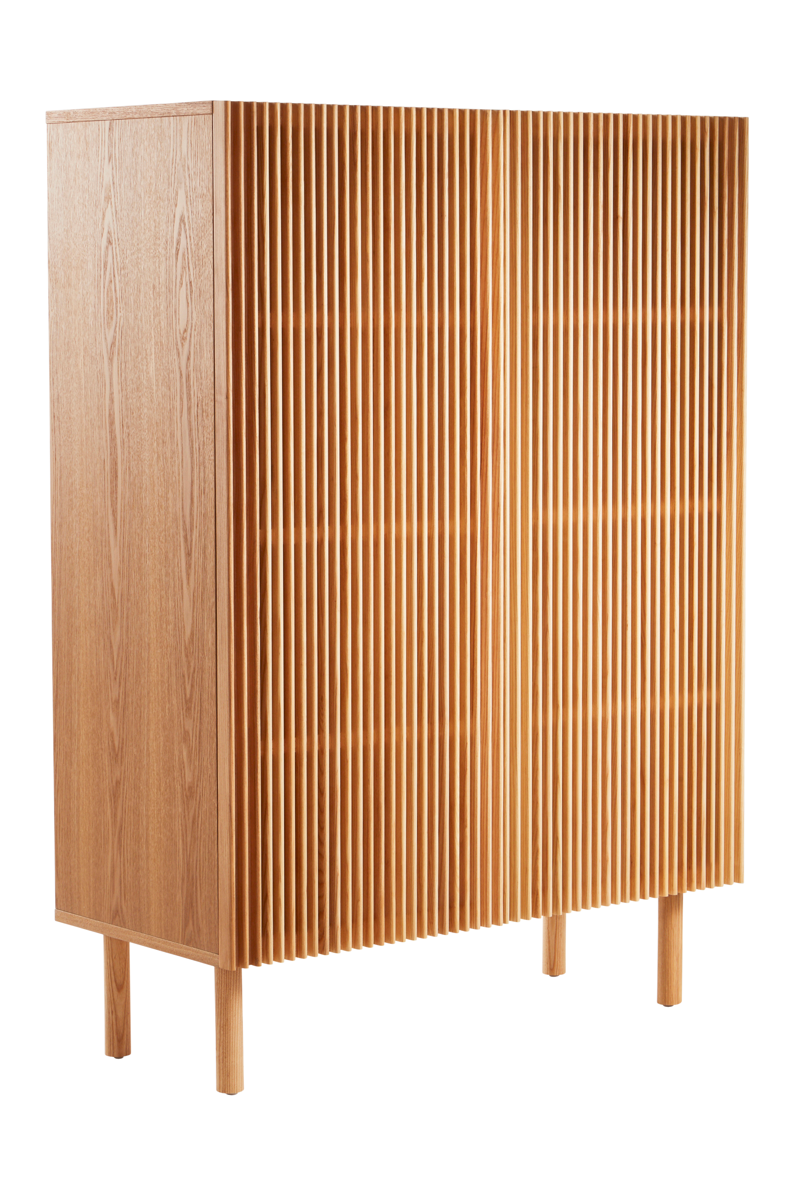 Kaappi, jossa on sisäänrakennettu työpöytä. Kaapissa on massiivituhkaovet ja -jalat, MDF-runko, jossa on tuhkaviilua. Tämän kaapin avulla saat täydellisen kotitoimiston, joka piilottaa tietokoneen ja työtarvikkeet, kun olet vapaa. Ovien takana on ulosvedettävä työpöytä ja erityinen hylly monitorillesi. Monitorin yläpuolella oleva hylly jättää tilaa näytöllesi, ja alahylly on muotoiltu niin, että saat jalkatilaa istuessasi ja työskennellessäsi. Kaappi antaa luonnollisen tunnelman skandinaavisella tyylillään, jossa on ripaus retroa. Tyylikkäät ovet on valmistettu tuhkakylkipuista, joissa on pyöristetty reuna ja väleissä esiintyy lievää läpinäkyvyyttä. Suorat, pyöreät jalat antavat siistin tunnelman. Takana on reiät mahdollisia kaapeleita varten. SION sopii yhtä hyvin olohuoneeseen kuin makuuhuoneeseen, eteiseen tai keittiöön. Sijoita kaappi sinne, missä on tilaa kotitoimistolle. Kukaan ei huomaa, että se on työpiste, kun et työskentele.
