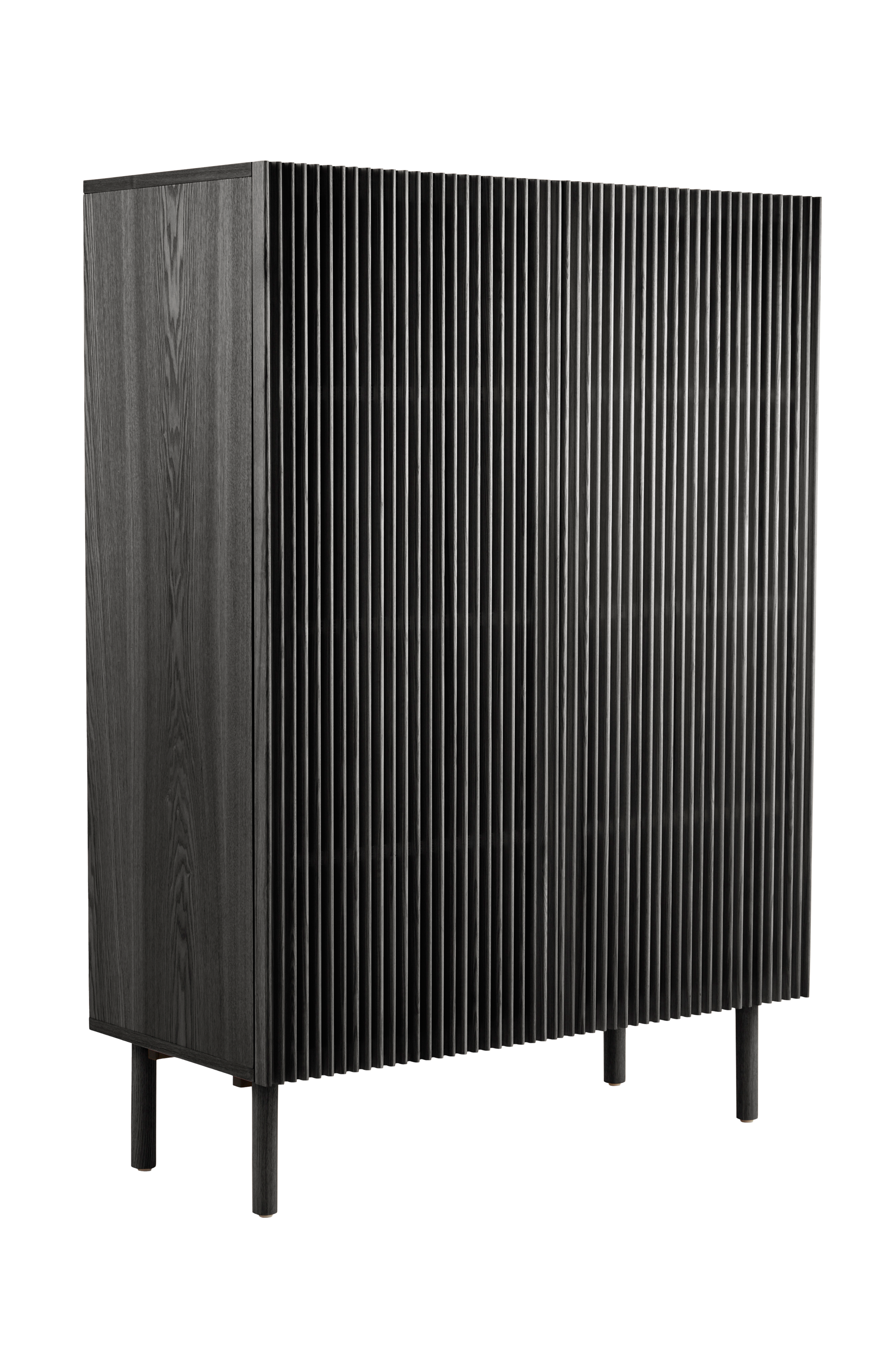 Kaapin ovet ja jalat massiivisaarnea, runko saarniviilutettua MDF-levyä. Kaappi luo luonnollista tunnelmaa skandinaavisella, aavistuksen retrohenkisellä tyylillään. Pelkistetyn tyylikkäät ovet on valmistettu pyöreäreunaisista saarnirimoista, joiden väliin on jätetty pienet raot. Kaapissa on kolme kiinteää hyllytasoa. Suorat pyöristetyt jalat antavat kaapille siron ilmeen. Ruuvit mukana. Osittain koottava. Kokoamisohje mukana.