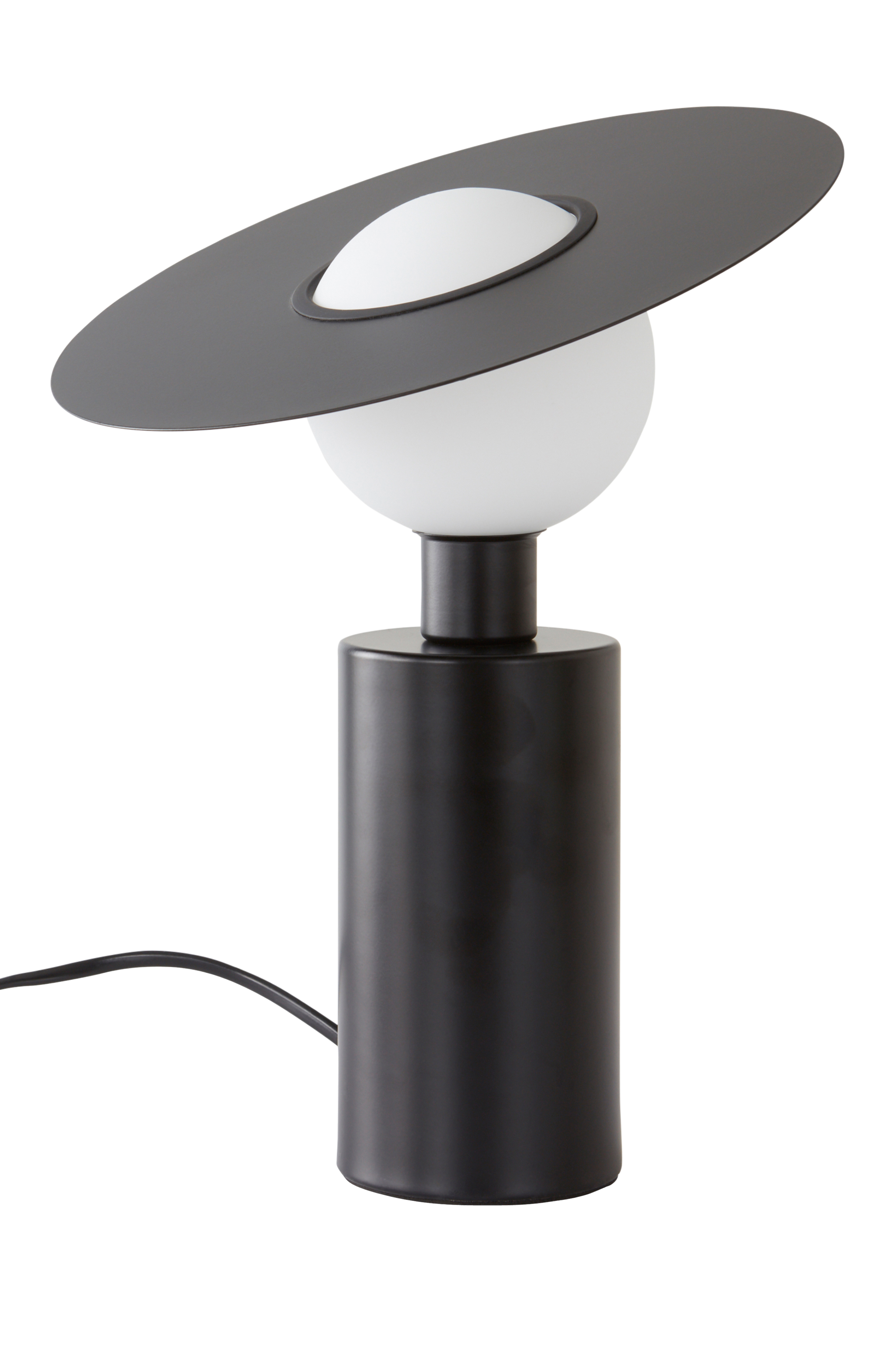 Mielenkiintoinen metallinen pöytävalaisin, jossa pyöreä valkoinen opaalilasikupu. Valaisin valaisee joustavasti varjostimen ansiosta. Varjostimen voi sijoittaa kupuun haluamallaan tavalla ja luoda tunnelmallista valoa. Musta johto, jossa virtakatkaisin.