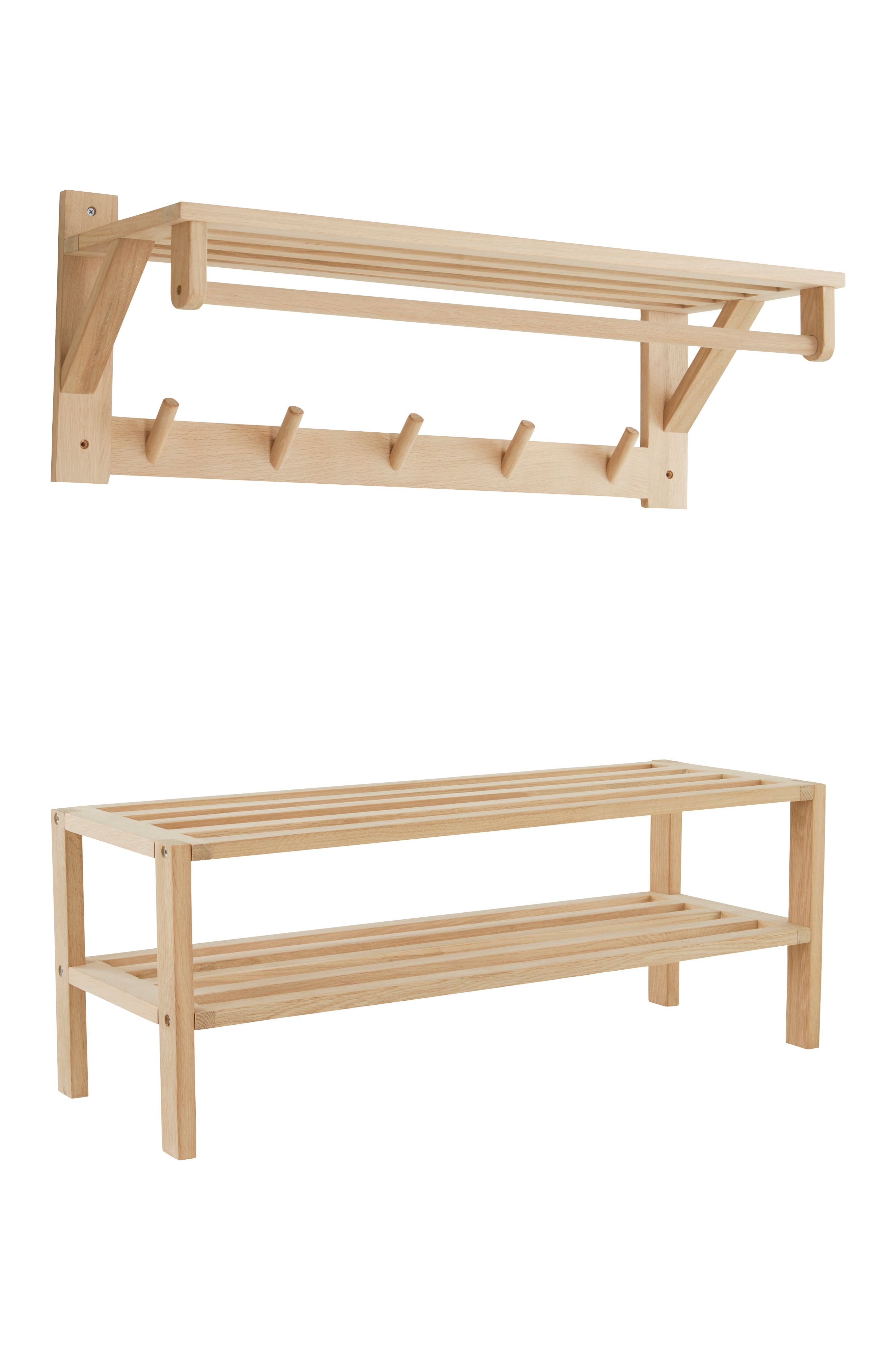 Muotoilultaan pelkistetyt ja ajattomat hattuhylly ja kenkähylly ovat erittäin käytännöllisiä ja sulautuvat helposti sisustukseen.