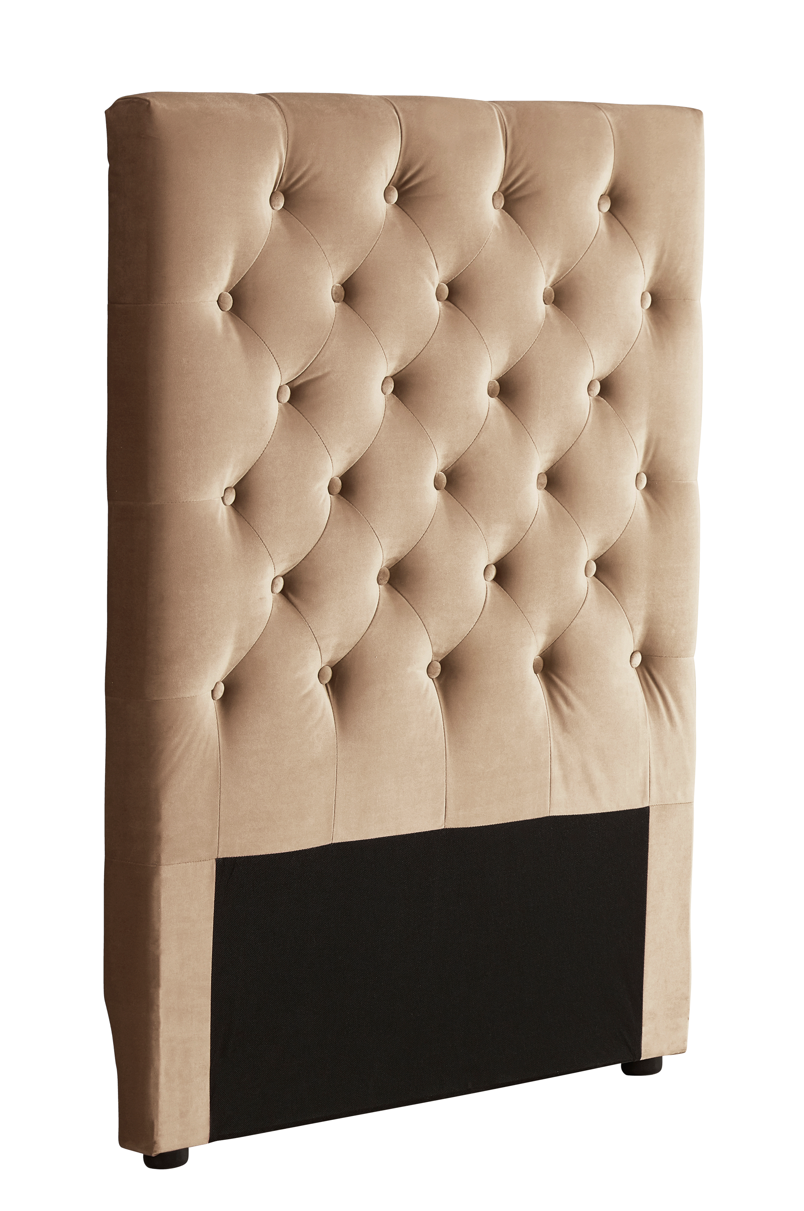 Erillinen sängynpääty, jonka päällinen samettia. Syvään upotetut päällystetyt napit. Luo persoonallinen ja ylellinen tunnelma makuuhuoneeseen vakaalla sängynpäädyllä, joka on pehmeää samettia. Kestävän kankaan Martindale-arvo on 28 000. Seinäkiinnikkeet mukana.