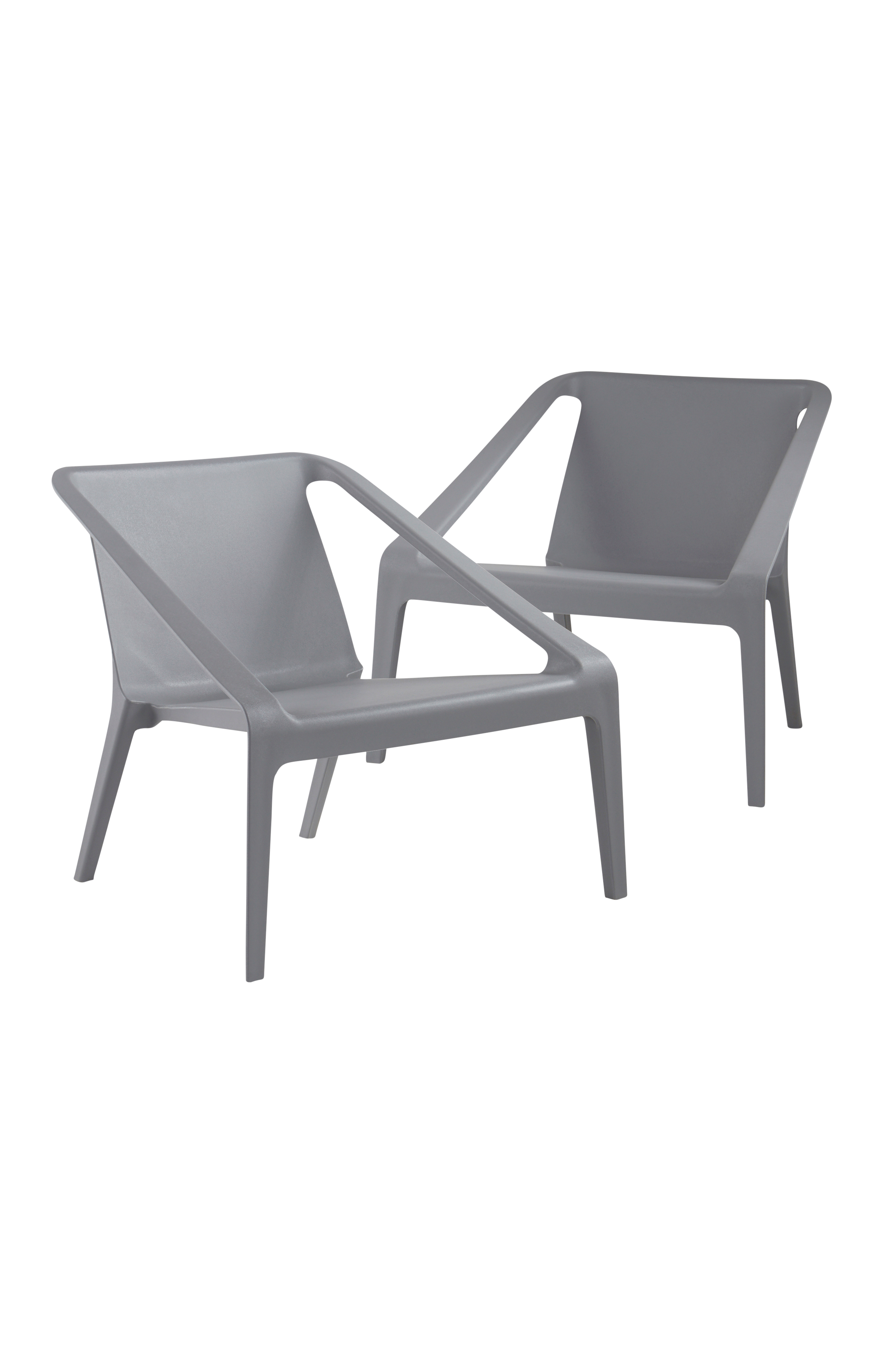 Loungetuolit valettua muovia, 2/pakkaus. Mukava loungetuoli, jossa istuin muotoonvalettua polypropeenia. Pinottavat tuolit on helppo ottaa esiin ja siirtää sivuun.