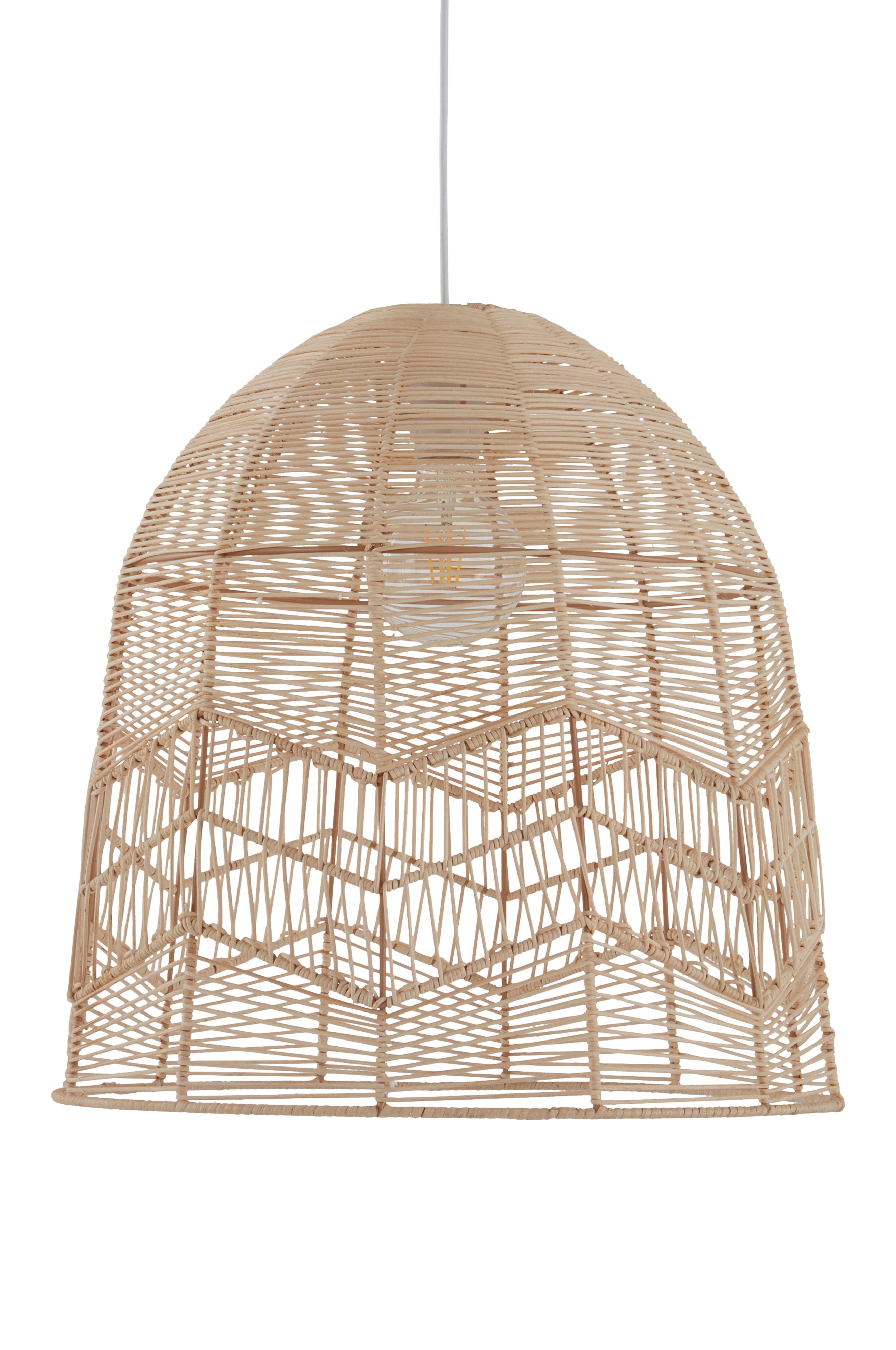 Kattovalaisin luonnollista rottinkia, jossa näyttävä punottu kuvio ympäriinsä. Runko valkoiseksi maalattu metallia. Miellyttävä valaisin luo kauniin valon luonnollisella tyylillään, ja valo siivilöityy kauniisti rottingin läpi. Rottinki luo rustiikin ja hieman boheemin tunnelman. Valkoinen johto. Valaisin on maadoittamaton, luokka 2. EU-sääntöjen vuoksi tietyissä maissa vaaditaan erillinen kattopistoke. Kattopistokkeen tulee olla maadoittamaton (luokka 2), ja se ostetaan erikseen.