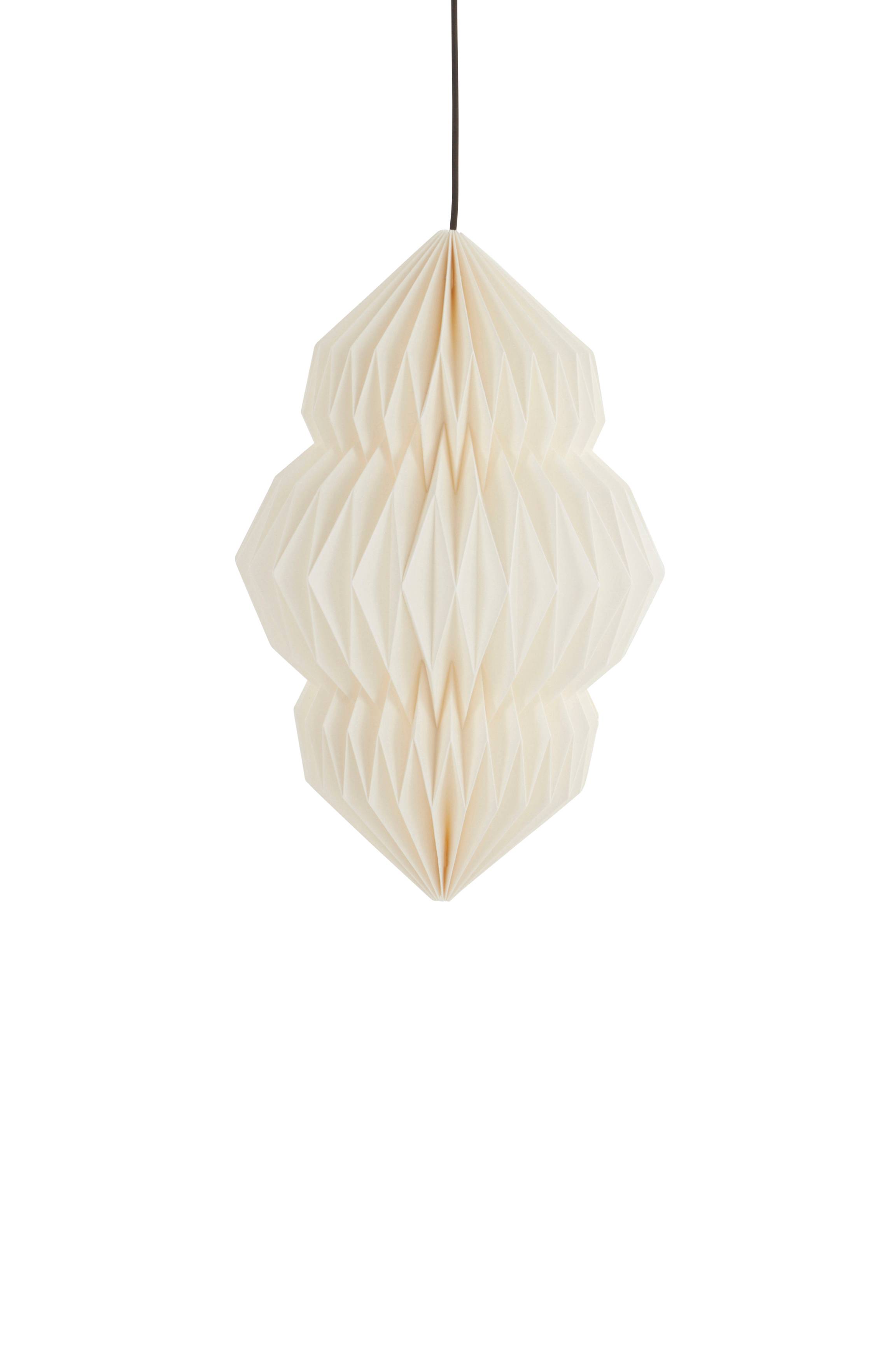 Kauniisti muotoiltu kattovalaisin laskostettua paperia, 160 g. Paperivalaisin luo tunnelmallisen valon lampun palaessa. Valaisin on maadoittamaton, luokka 2. EU-sääntöjen vuoksi tietyissä maissa vaaditaan erillinen kattopistoke. Kattopistokkeen tulee olla maadoittamaton (luokka 2), ja se ostetaan erikseen.