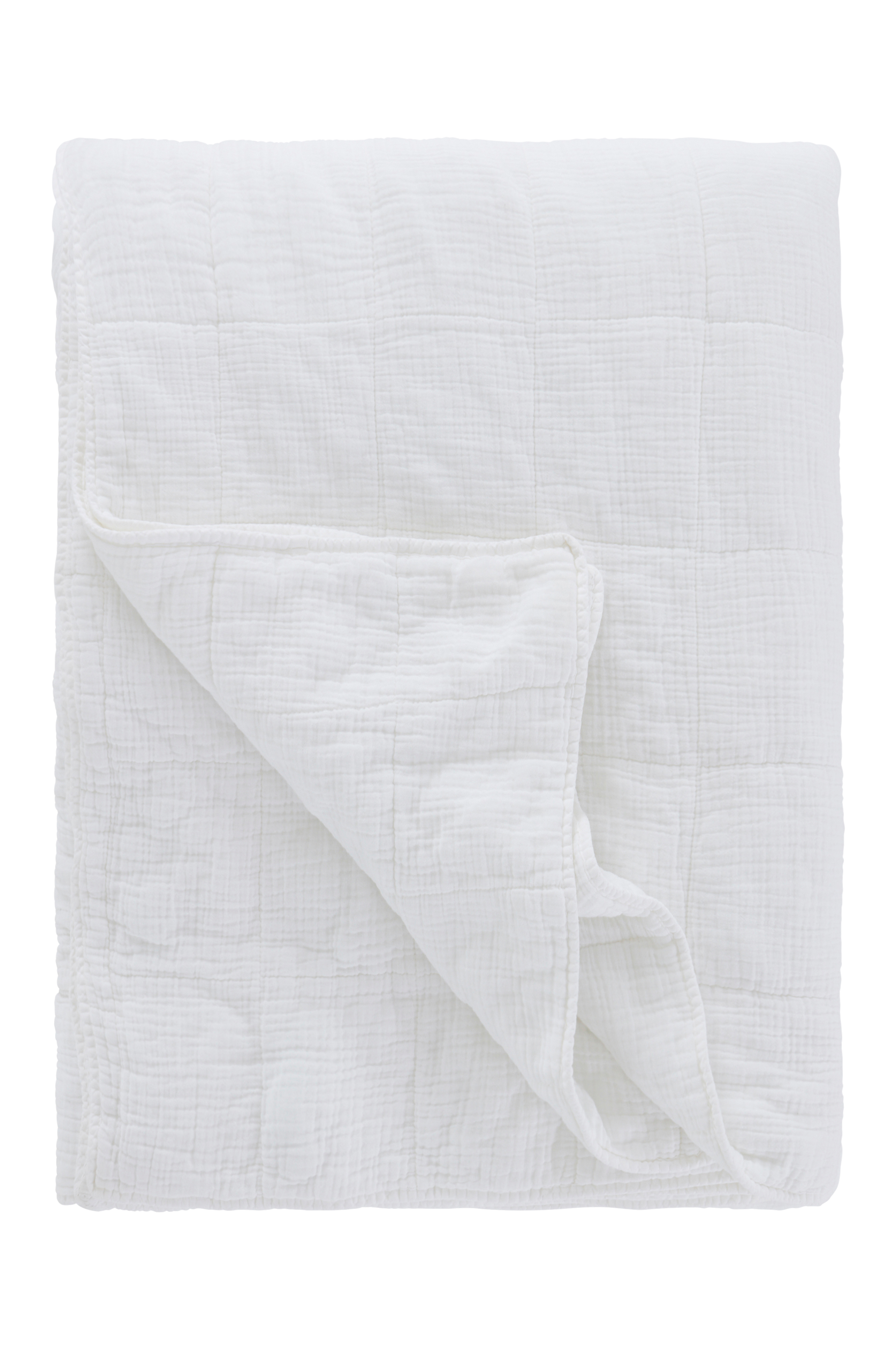 Yksivärinen päiväpeite ihanaa ekologista puuvillamusliinia. Kevyt ja ilmava toppaus. Neliönmuotoiset tikkaukset pitävät toppauksen paikallaan. Musliini on pehmeä ja ohut kaksinkertainen kangas, jonka kuplamainen pinta tekee siitä pehmeän ja erittäin helppohoitoisen. Sitä ei tarvitse silittää eikä mankeloida. Päiväpeite on myös pesty pehmeän tunnun saamiseksi ja kuplamaisen struktuurin esiin tuomiseksi. Langantiheys 178 tc. (Langantiheys kertoo lankojen lukumäärän, thread counts, neliötuuman alalla. Mitä suurempi langantiheys, sitä laadukkaampi kangas.)