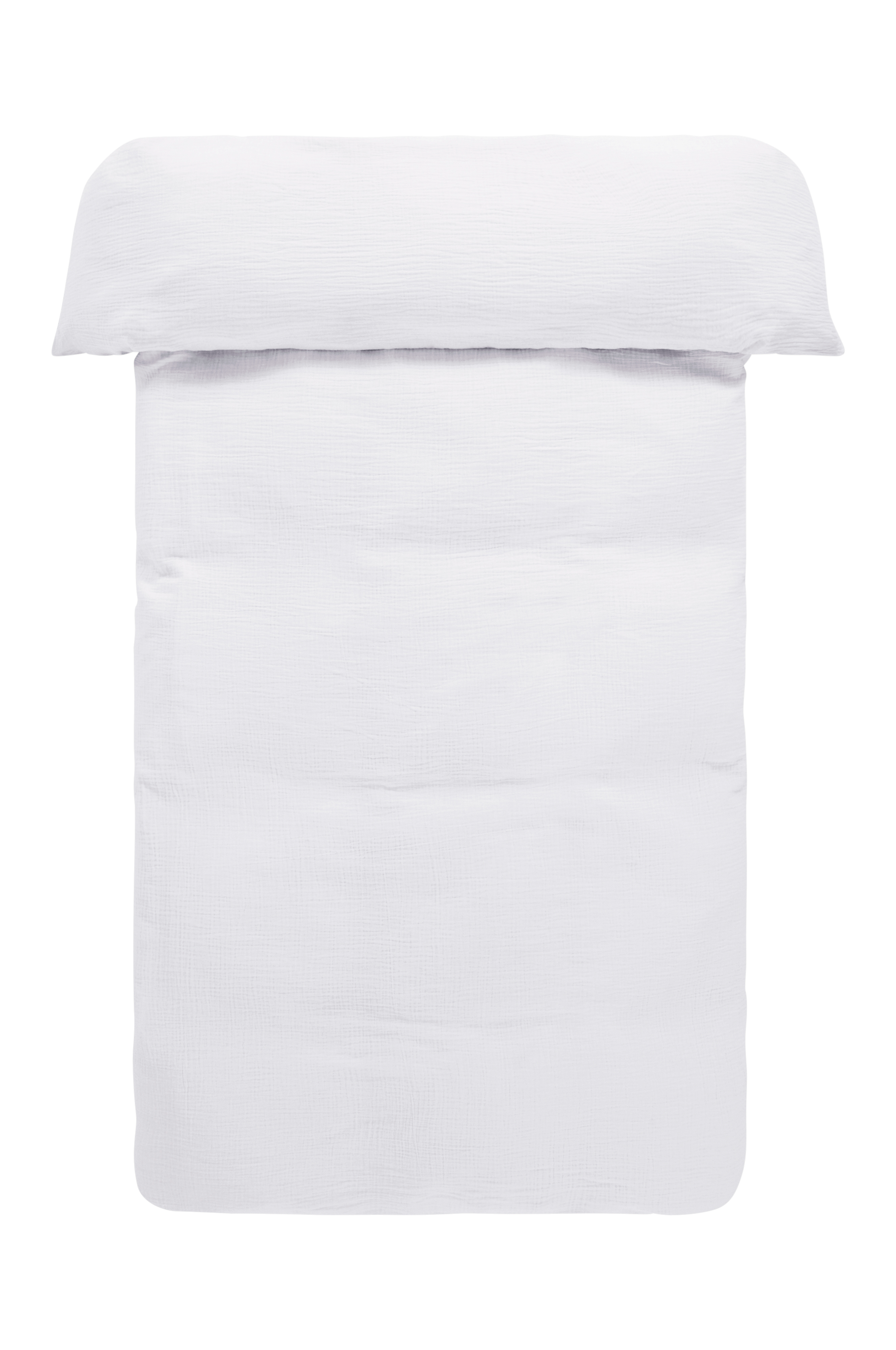 Yksivärinen pussilakana miellyttävää ekologista puuvillamusliinia. Musliini on pehmeä ja ohut kaksinkertainen kangas, jonka kuplamainen pinta tekee siitä pehmeän ja erittäin helppohoitoisen. Sitä ei tarvitse silittää eikä mankeloida. Kangas on myös pesty pehmeän tunnun saamiseksi ja kuplamaisen struktuurin esiin tuomiseksi. Musliinikangas tuntuu miellyttävältä nukkuessa. Langantiheys 178 tc. (Langantiheys kertoo lankojen lukumäärän, thread counts, neliötuuman alalla. Mitä suurempi langantiheys, sitä laadukkaampi kangas.)