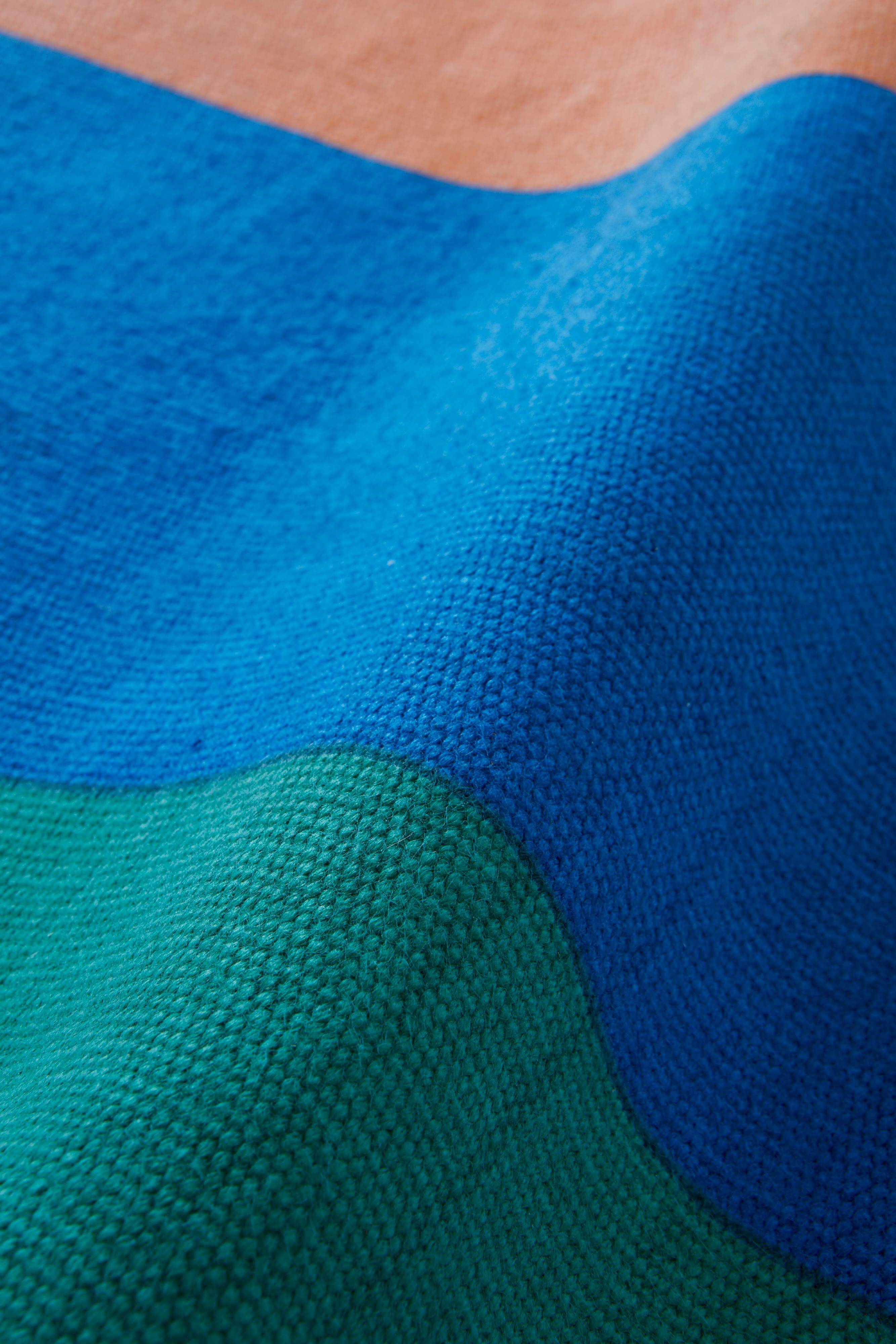 Sileä käsinkudottu matto, jossa painettu raitakuvio. Painatus antaa erottuvat, kirkkaat värit. Ohut matto, jota voidaan käyttää rannalla tai piknikillä. Sopii myös sisäkäyttöön. Kevyt siirtää ja ravistaa, kätevä esimerkiksi eteisessä. Matto on kierrätetystä materiaalista valmistettua polyesteriä. Sopii täydellisesti ulkokäyttöön. Kestää kastumisen homehtumatta - materiaalin loistava ominaisuus. Paksuus 0,6-0,7 cm. 650-700 g/m².