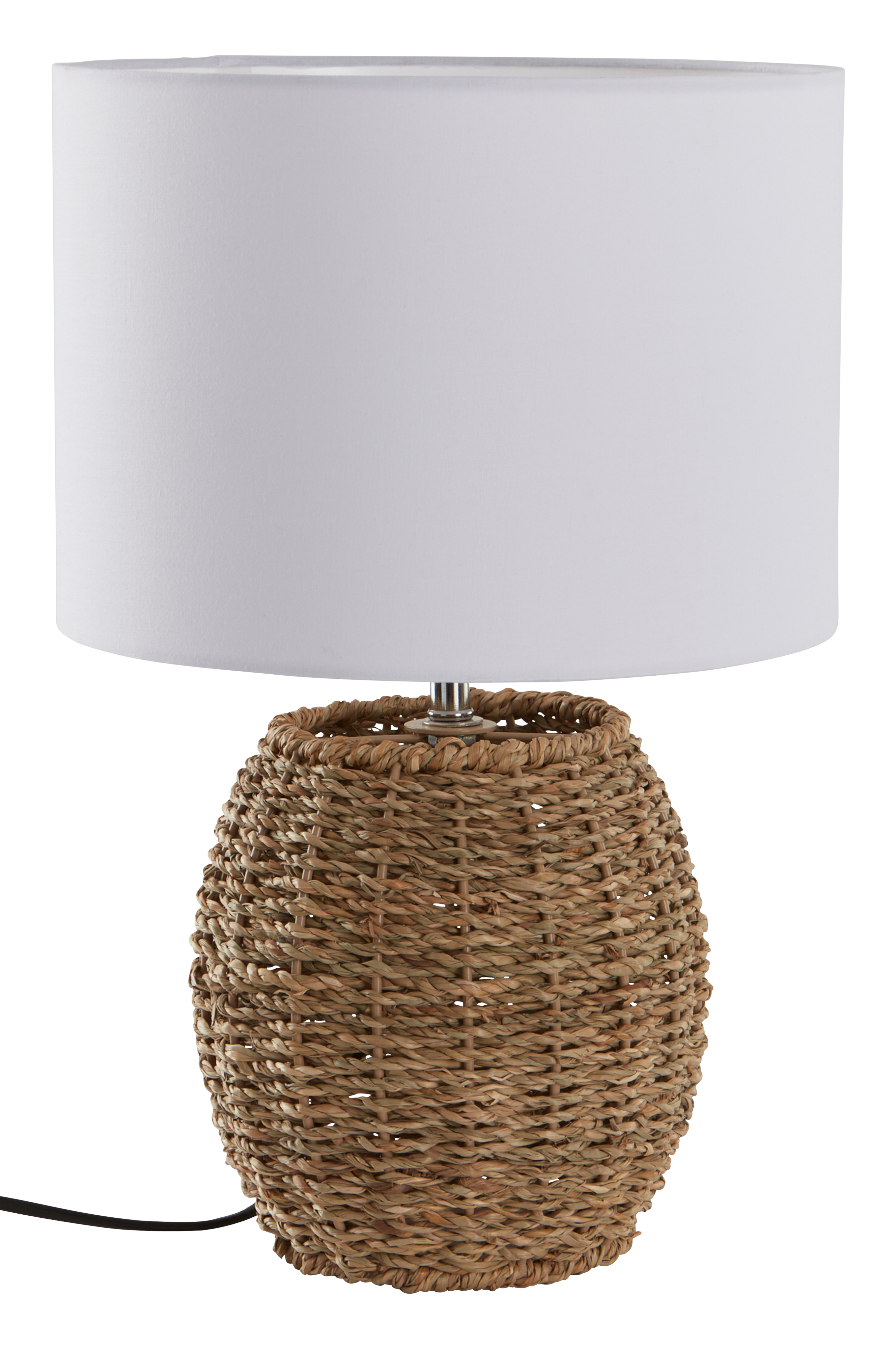 Pöytävalaisimen rustiikki jalka on valmistettu luonnollisesta meriheinästä, joka on punottu metallirungon ympärille. Pyöristetty jalka luo jännittävän kontrastin tyylikkään ja suoran varjostimen kanssa. Puuvillavarjostin ja metallirunko. Musta johto, jossa virtakatkaisin. Valaisin on maadoittamaton, luokka 2.