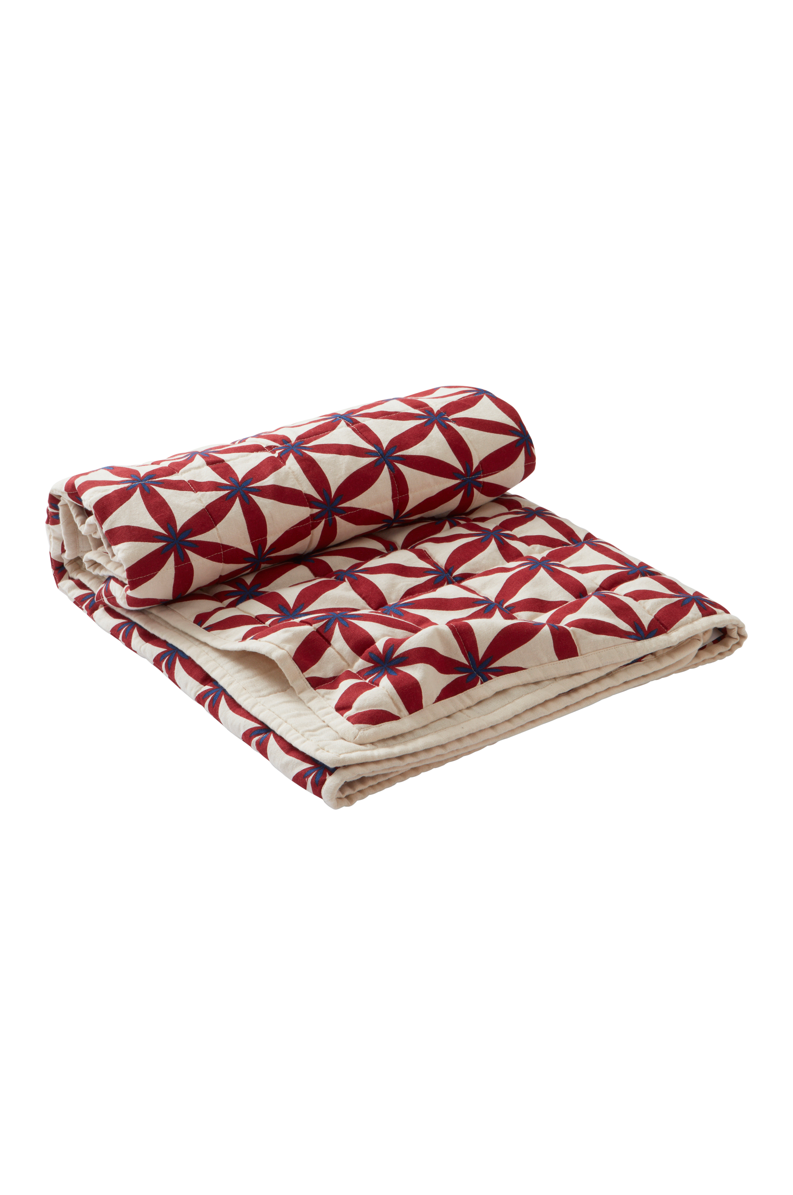 Kevyesti topattu torkkupeitto vaatepestyä puuvillaa, jossa on kuviopainatus vaalealla pohjalla. Yksivärinen takaosa on kaksikerroksista musliinia, joka on pehmeää ja miellyttävää. Torkkupeiton ympärillä oleva reuna on samanvärinen kuin takaosa. Torkkupeitto on tikattu koristeellisilla saumoilla, jotka pitävät täytteen paikoillaan. Täyte polyesteriä.