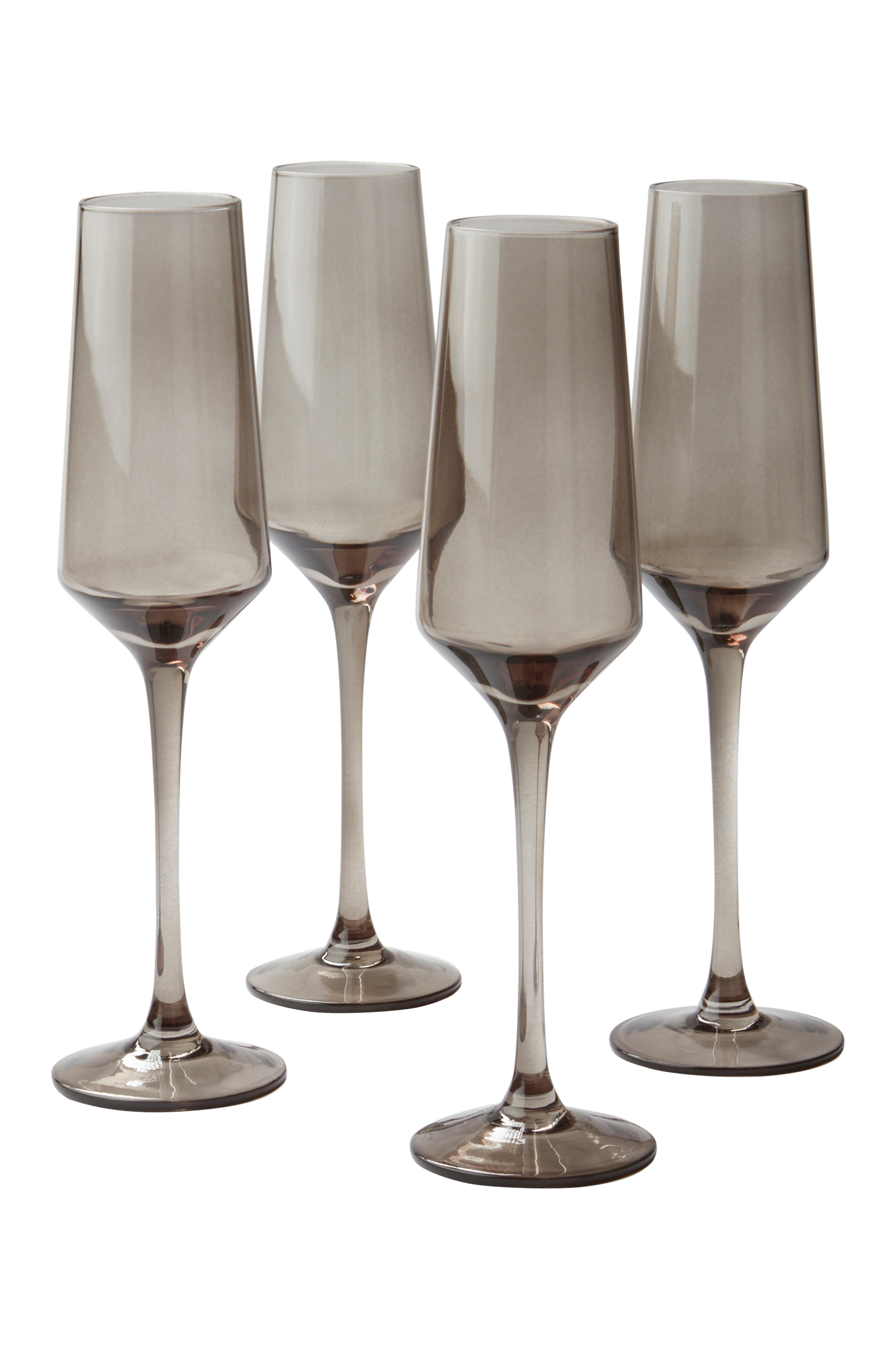 Samppanjalasit, 4/pakkaus. Savunväristä lasia, joka tuo herkullisen säväyksen kattaukseen. Siroissa ja pehmeälinjaisissa laseissa on ohut, korkea ja kaunis jalka. VANNA-sarjassa on useita yhteensopivia laseja, jotka sopivat hyvin illalliskattauksiin.
