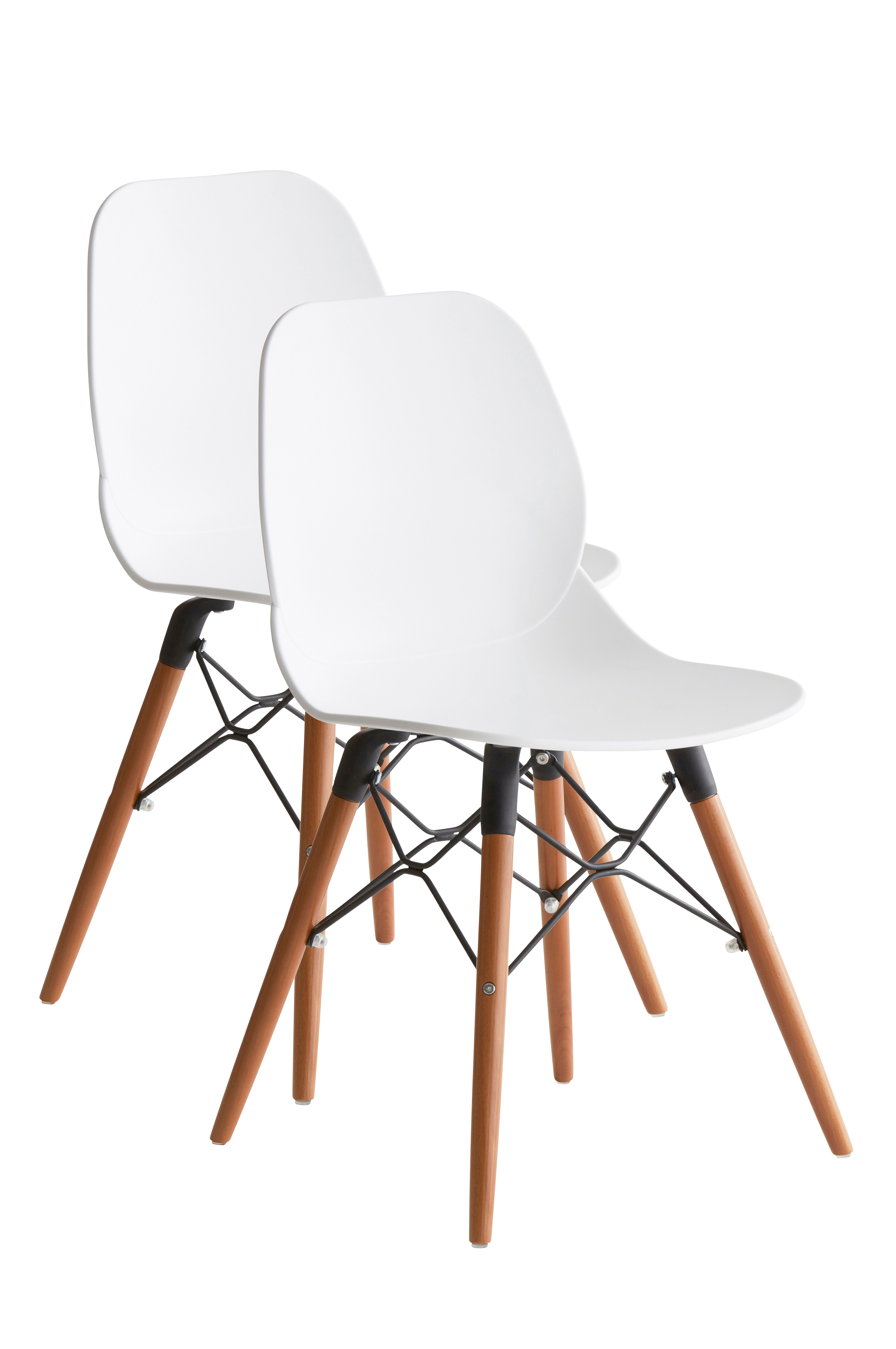 Kuvaus: 2 tuolia, joiden muotoonvalettu istuin polypropeenia, tummaksi petsatut jalat pyökkiä ja metallia. Osittain koottava. Kokoamisohje mukana.