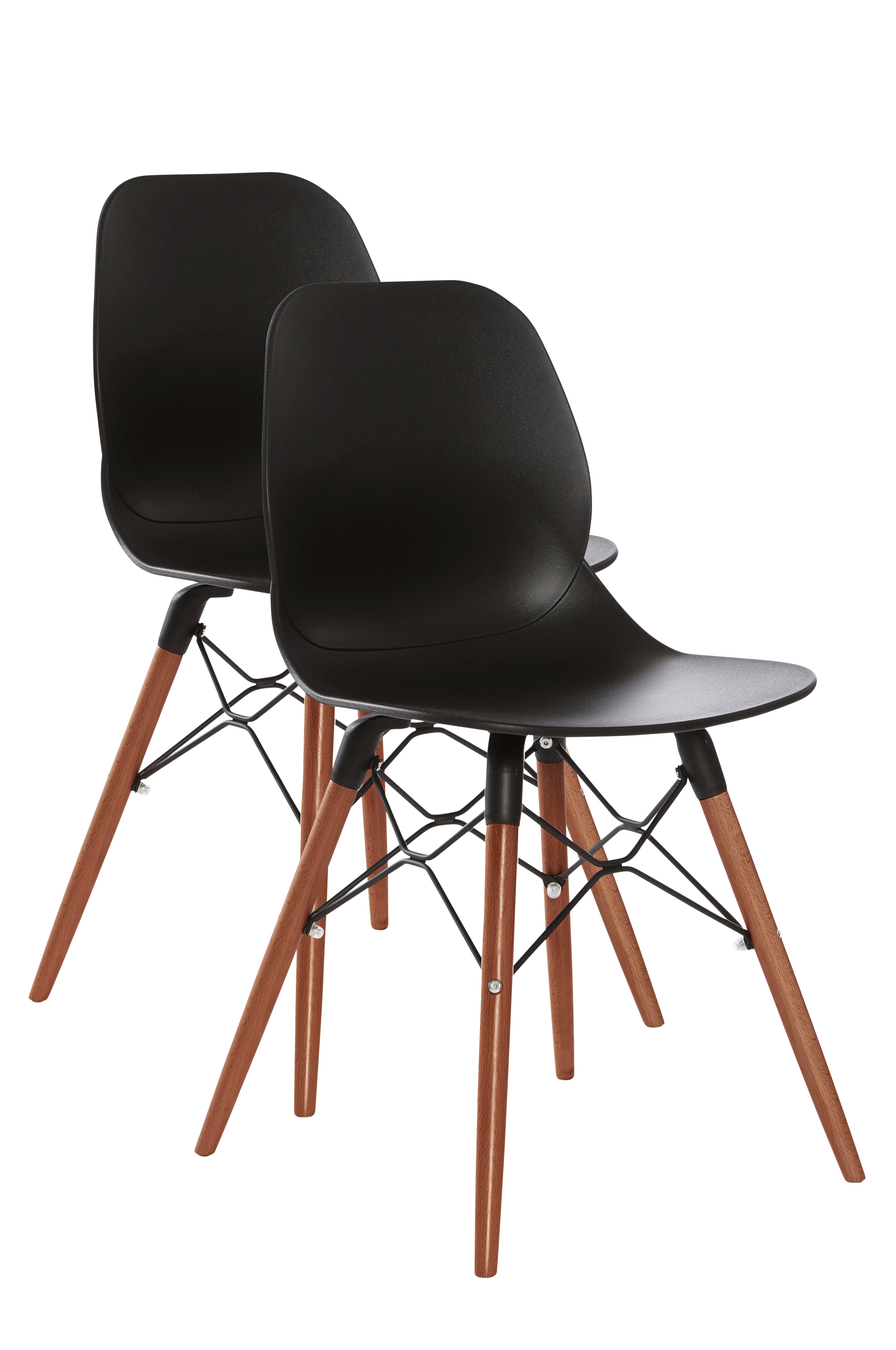 Kuvaus: 2 tuolia, joiden muotoonvalettu istuin polypropeenia, tummaksi petsatut jalat pyökkiä ja metallia. Osittain koottava. Kokoamisohje mukana.