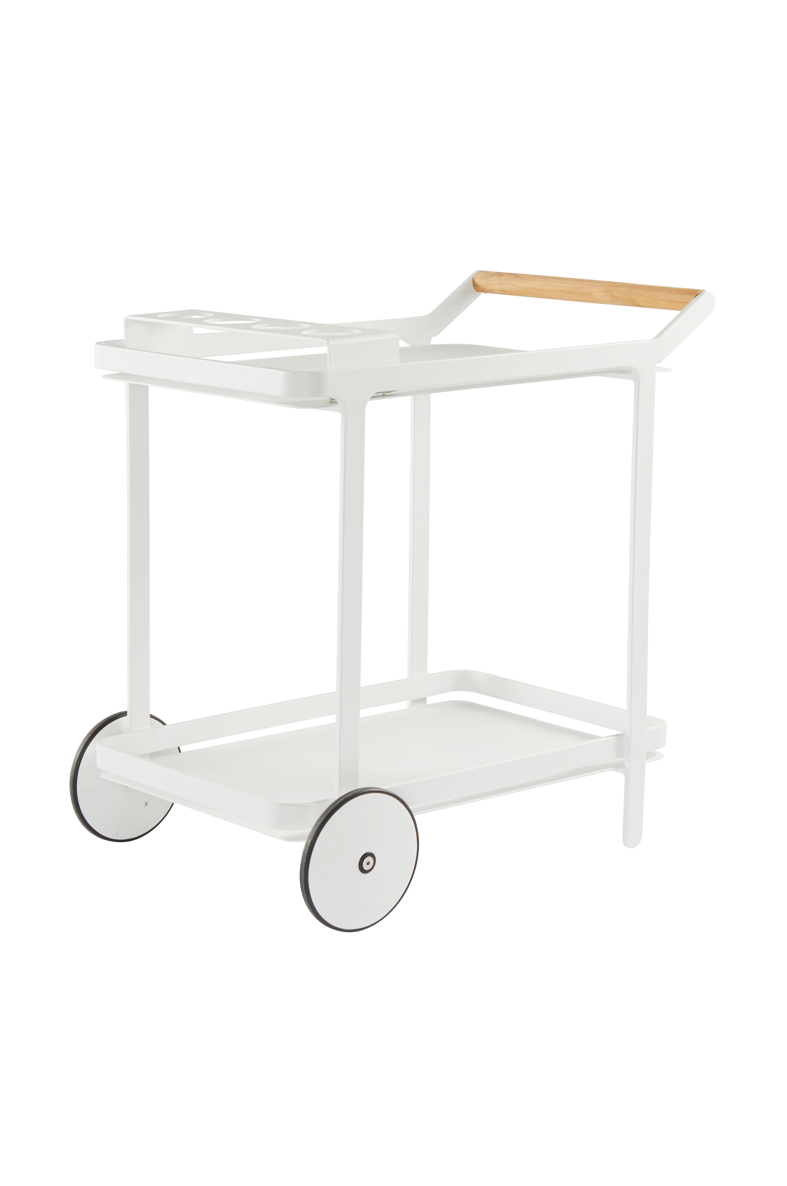 Tarjoiluvaunu jauhemaalattua, mattapintaista alumiinia. Mukava, pyöreä ja puinen työntöaisa. VENEZIA on kätevä terassilla helpottamassa pöytään tarjoilua tai laskutasona grillin vieressä. Tarjoiluvaunun mukana toimitetaan siihen täydellisesti sopiva, kätevä pidike neljälle lasille tai pullolle. Pidikkeen voi sijoittaa mihin vain vaunuissa. Etupyörät tekevät vaunujen työntämisestä helppoa - nostat ylös ja työnnät eteenpäin. Kahden pyörän ja kahden jalan ansiosta tarjoiluvaunu pysyy vakaasti paikoillaan. Alumiini on hyvä, kestävä ja ruostumaton materiaali ulkokäyttöön. Osittain koottava.