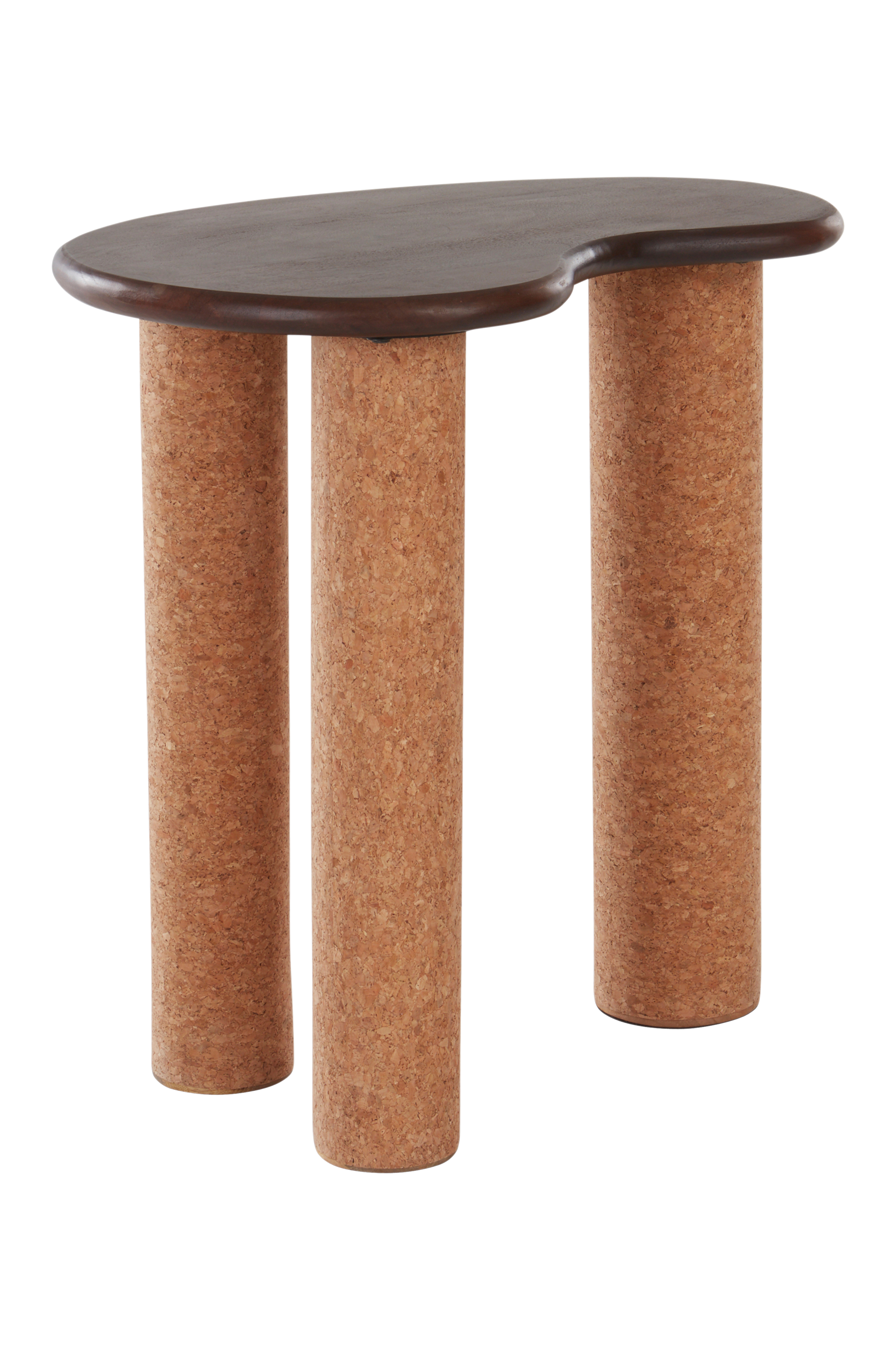 VINIO pöydässä on selkeät kontrastit. Pöytälevy on massiivista mangopuuta, ja kolme paksua pyöreää jalkaa ovat korkkiviilulla päällystetty MDF-levyä. Korkki on juuri nyt erittäin trendikästä, tyylikästä ja miellyttävän retrohenkistä. Korkki on pehmeä luonnonmateriaali, joka ikääntyy kauniisti ja saa arvokasta patinaa. Pöytälevyssä on epäsäännöllinen, pehmeä muoto ja pyöristetty reuna. Osittain koottava. Kokoamisohje mukana.
