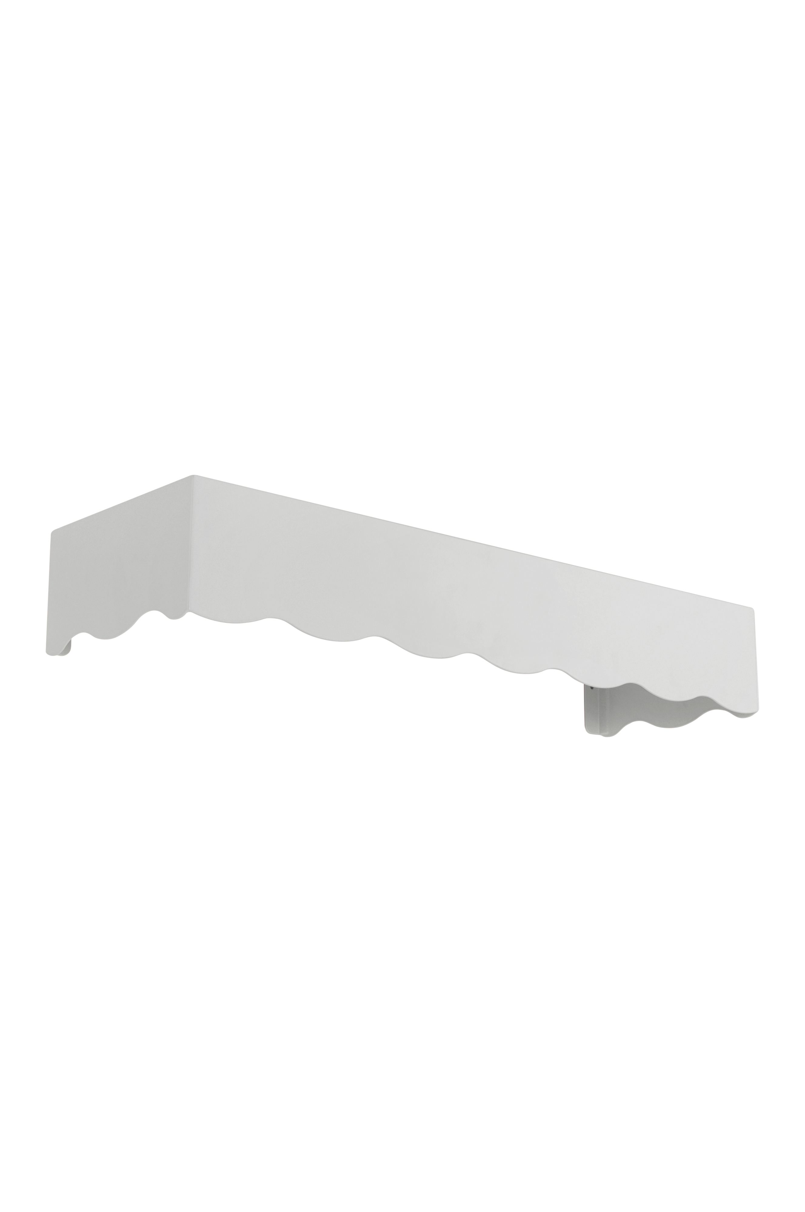 Seinähylly terästä. Hyllyssä on viisi piilotettua tuplakoukkua hyllyn kolmella sivulla kulkevan aaltomaisen reunan takana. Ripustuskoukut on muotoiltu käytännöllisesti siten, että vaatteet ja laukut eivät pääse liukumaan. Takareunassa on pienet reiät, joiden ansiosta hylly on helppo ruuvata seinään kiinni.
