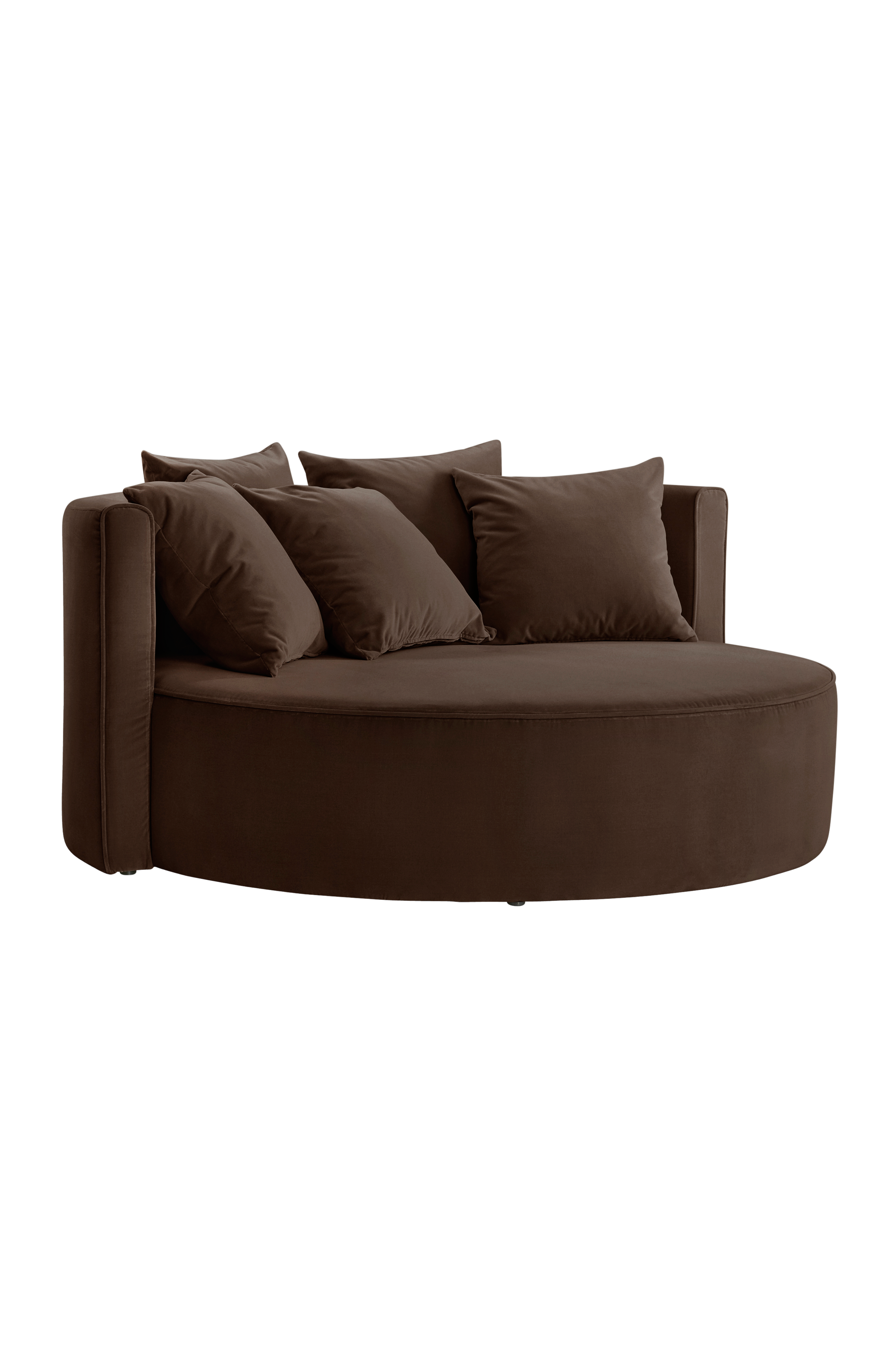 Pyöreä samettisohva, jossa on erittäin kestävä puuvilla- ja polyesterisamettiverhoilu. WYOMINGissa on tukeva mänty- ja vanerirunko, jossa on upea kylmävaahtorakenne, siksak-jousitus, joustavat hihnat ja mukava höyhen- ja pallokuitupehmuste. Selkänojatyynyissä on höyhen- ja pallokuitupehmuste, johon on mukava nojata.