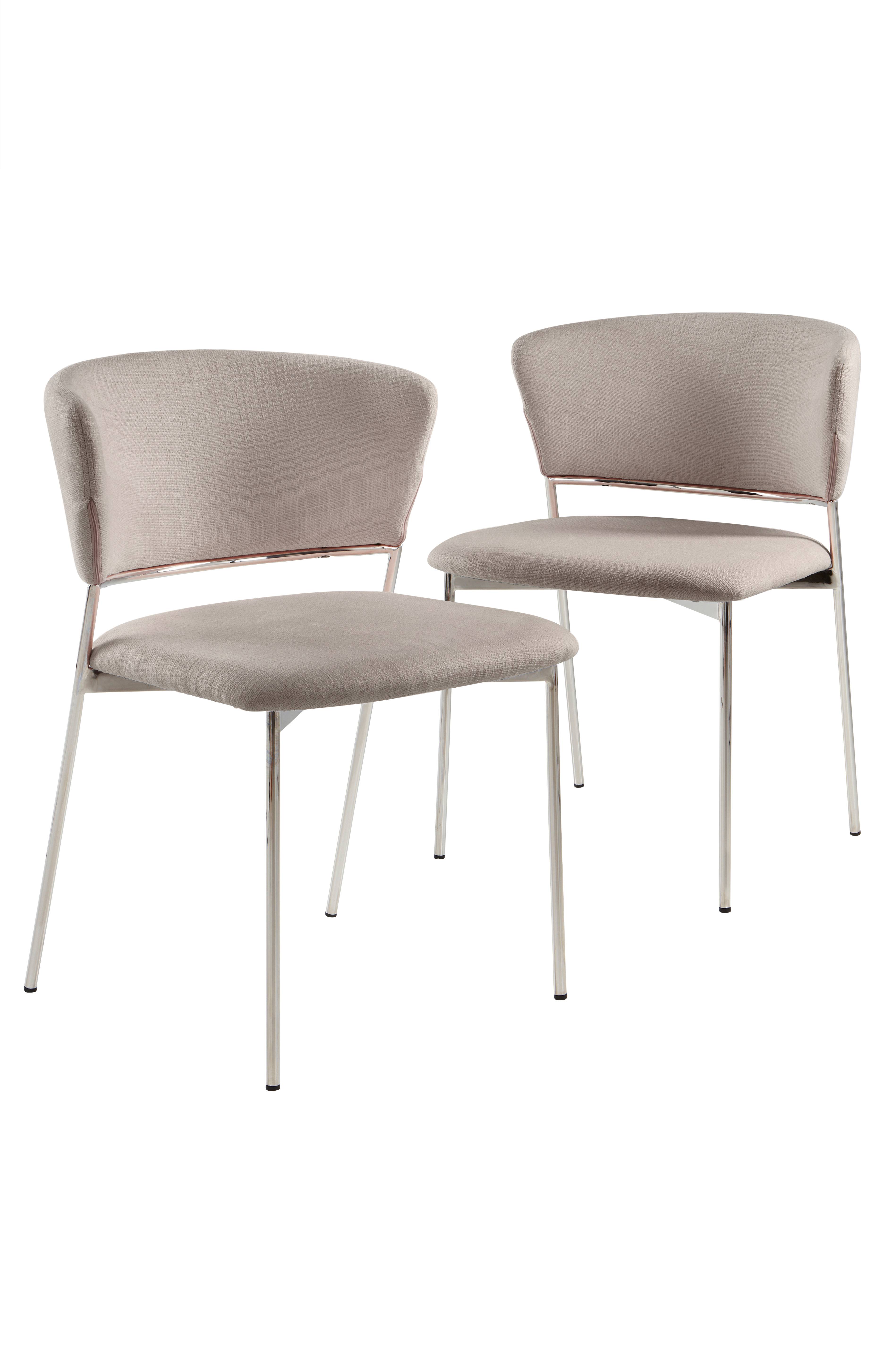 2-pack tuoleja, joissa on tyylikäs pehmeällä sienilillä verhoiltu ja vaahtomuovitäytteellä pehmustettu verhoilu. Jalat ovat kromattua terästä ja malli on moderni ja ajaton. Pehmeästi pehmustettu selkänoja on mukavasti pyöristetty. Tuoli on pinottava, mikä on joskus erittäin käytännöllinen. Kangas on erittäin kestävä, Martindale 40000-50000.