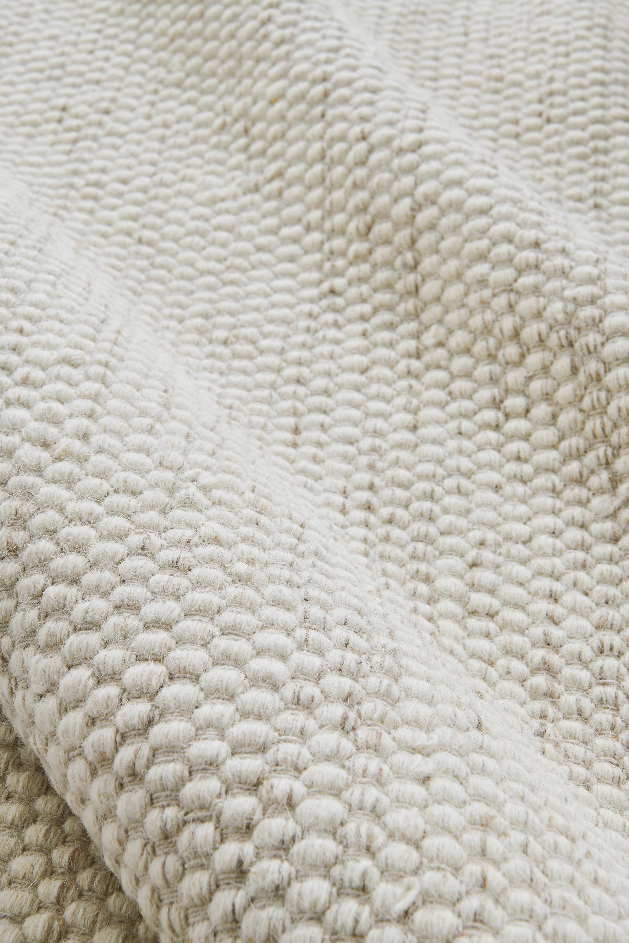 Käsintehty matto hienosta villasta ja puuvillasta. Pyöreä matto on sileäksi kudottu, hieman karheamman tuntuinen, ja sen tyylikäs muotoilu sopii moneen eri tyyliin ja trendiin. Hienovarainen raita lyhyellä sivulla kiinnittää huomion ja matosta tulee rauhallinen ja tasapainoinen pohja huoneeseesi. Maton villa on peräisin tiloilta, joilla lampaat elävät lajilleen luonnollista elämää sopusoinnussa luonnon kanssa.