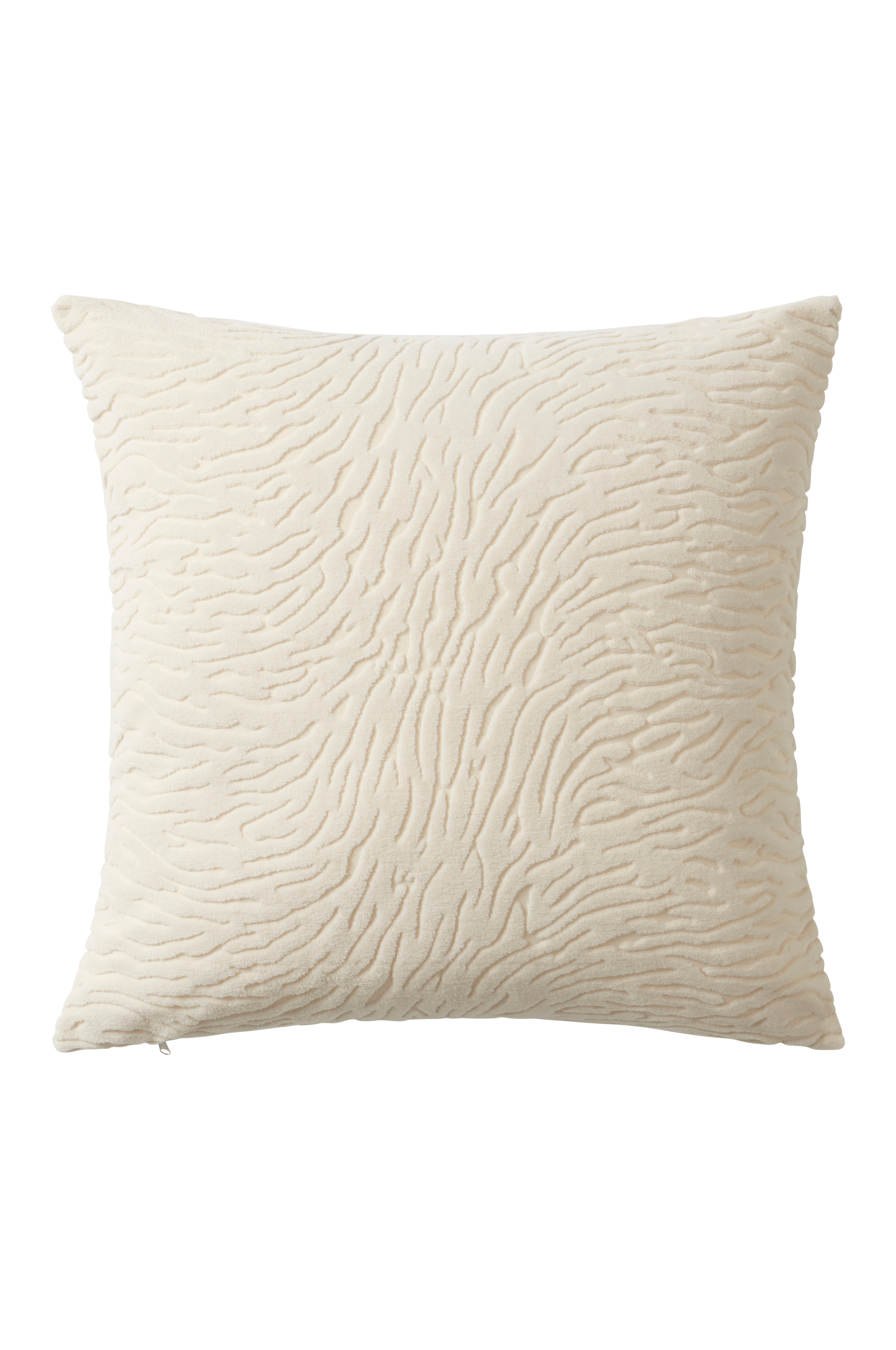 Tyynynpäällinen hienoa samettikangasta, jossa sointuva seeprakuvio - ns. polttopainatus. 1/pakkaus. Kangas on pehmeää ja joustavaa polyesteriä. Vetoketju alareunassa.