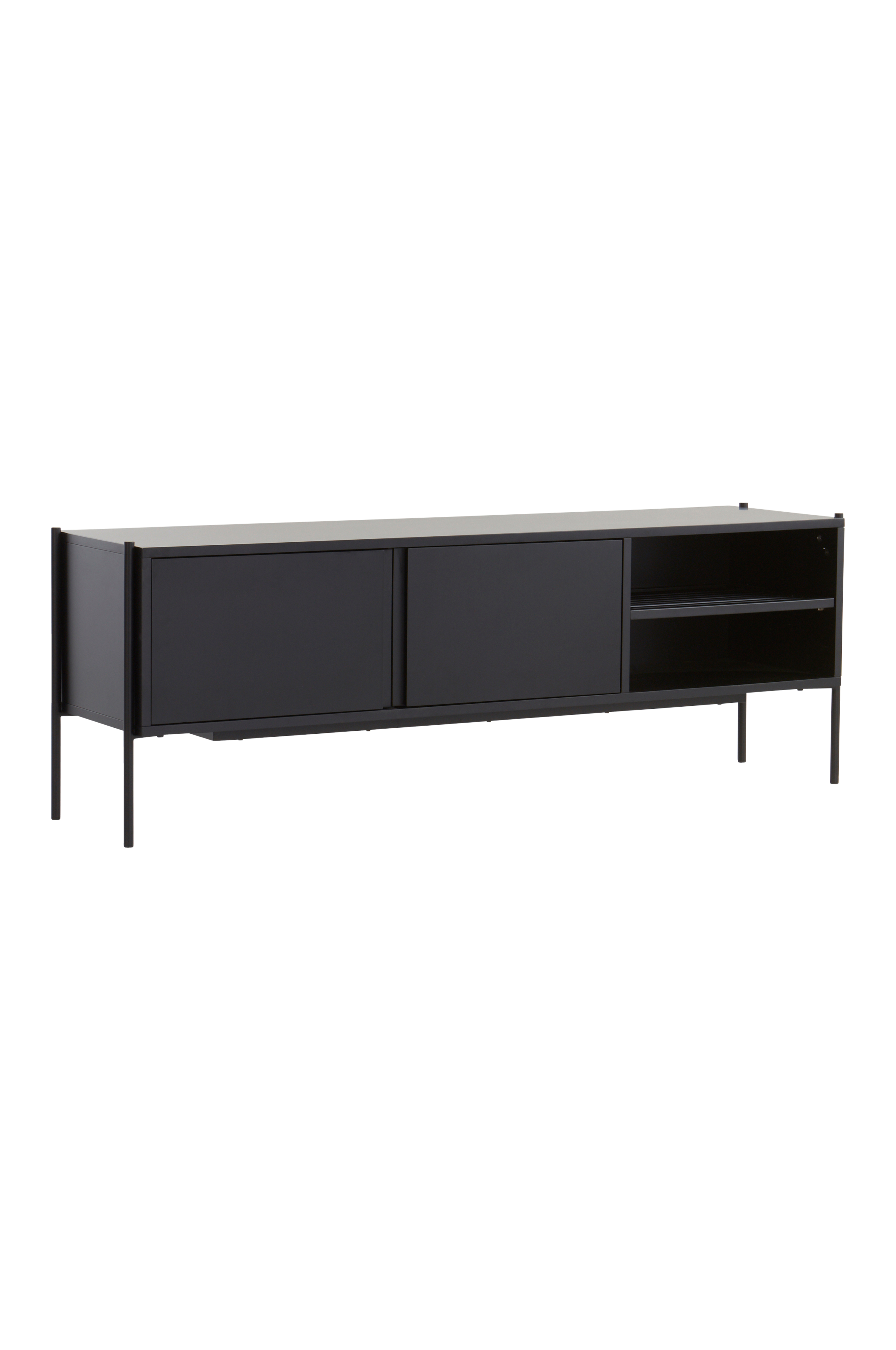 TV-taso mattapintaista maalattua MDF-levyä, mattamustat jalat terästä. ZOLLIK on muotoilultaan ajaton ja pelkistetty. Kolmesta osiosta kahdessa on sileä ovi ja yksi on avoin. Ovissa on push-toiminto. Jokaisessa osiossa on yksi kiinteä hyllytaso. Ovien takana piilossa ja avoimilla hyllyillä olevien säilytystilojen yhdistelmä on sekä käytännöllinen että tyylikäs. Ruuvit mukana. Osittain koottava. Kokoamisohje mukana. Seinäkiinnikkeet mukana.