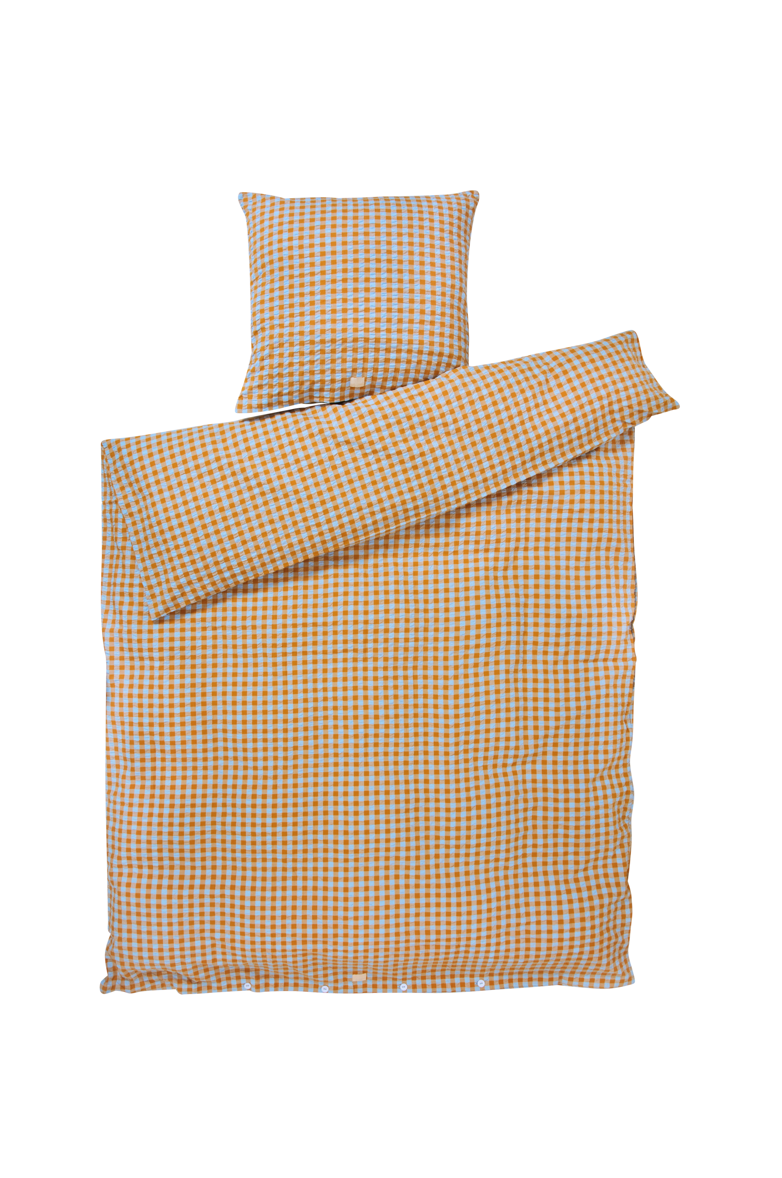 Bæk&Bølgen uudessa ruudullisessa pussilakanasetissä on lämmintä ja hillittyä raikkautta, johon okra antaa syvyyttä ja rauhaa tuoden mieleen kauniiden syyspäivien kävelylenkit metsässä tai rannalla. Materiaali on 100% ekologista puuvillaa, joka on sekä OEKO-TEX®-merkittyä että GOTS-sertifioitu, itsestään siliävää. Tyynyliinassa on kirjekuorisuljenta ja pussilakanassa napit. Jos kotonasi on jo muita JUNA-pussilakanasettejä, voit yhdistellä eri värejä ja kuvioita ja luoda oman yksilöllisen tyylisi makuuhuoneeseen.