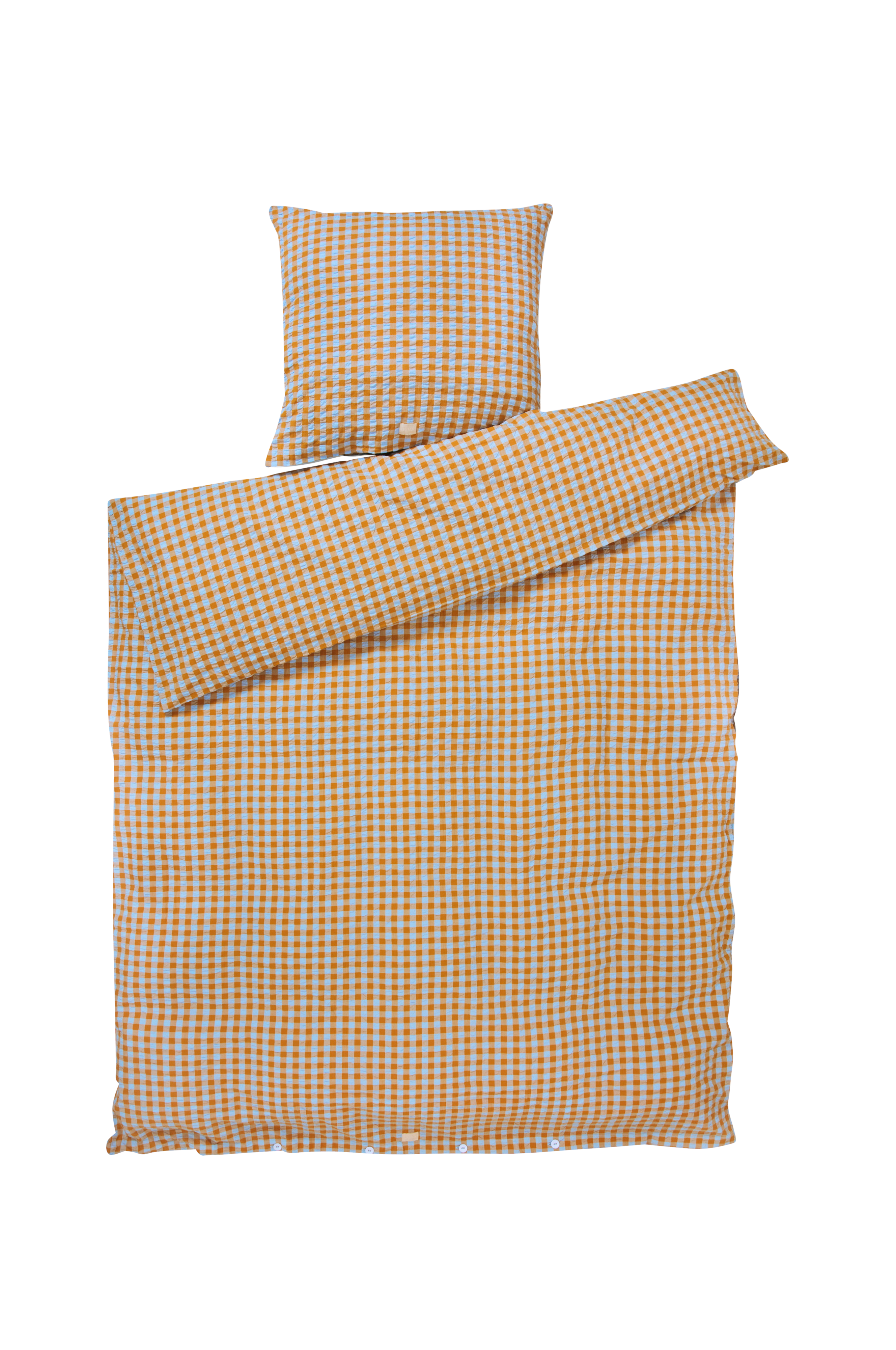 Bæk&Bølgen uudessa ruudullisesta pussilakanasetissä on lämmintä ja hillittyä raikkautta, johon okra antaa syvyyttä ja rauhaa tuoden mieleen kauniiden syyspäivien kävelylenkit metsässä tai rannalla. Materiaali on 100% ekologista puuvillaa, joka on sekä OEKO-TEX®-merkittyä että GOTS-sertifioitu, silittämättä siistiä. Tyynyliinassa on kirjekuorisuljenta ja pussilakanassa napit. Jos kotonasi on jo muita Juna-pussilakanasettejä, voit yhdistellä eri värejä ja kuvioita ja luoda oman yksilöllisen tyylisi makuuhuoneeseen.