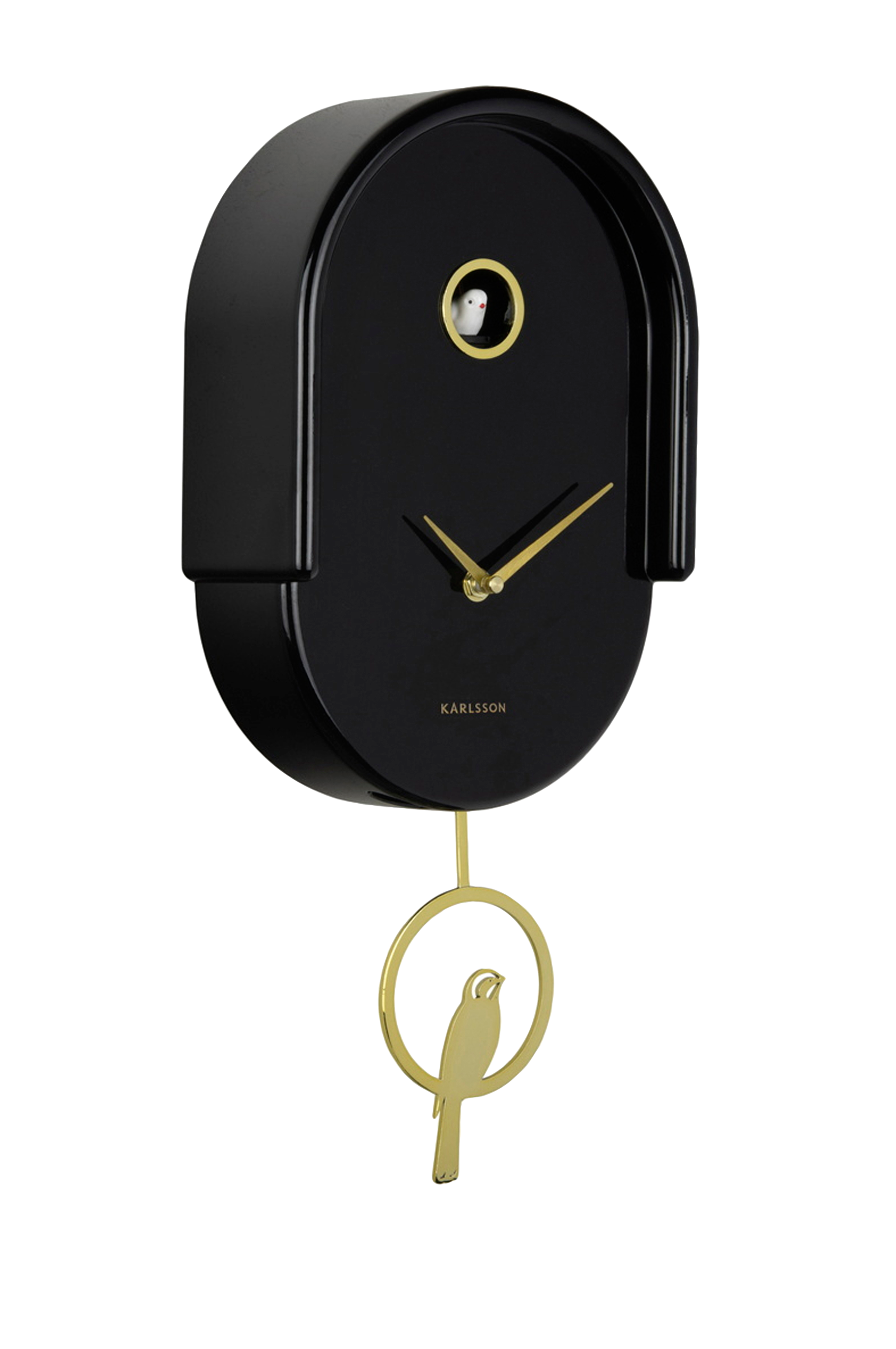 Luonteikas muotoilu. Callum Macsorleyn suunnittelema Karlssonin seinäkello tweet huokuu ylellisyyttä kiiltävällä pinnallaan ja hienostuneilla yksityiskohdillaan. Kellossa on heiluri ja elegantti lintu, joka herää eloon tiettyinä aikoina. Pyöreät muodot ja kullanväriset elementit antavat kellolle leikkisän mutta tyylikkään ilmeen. Silmiinpistävä esine, joka varmasti viehättää muotoilun ystäviä.
