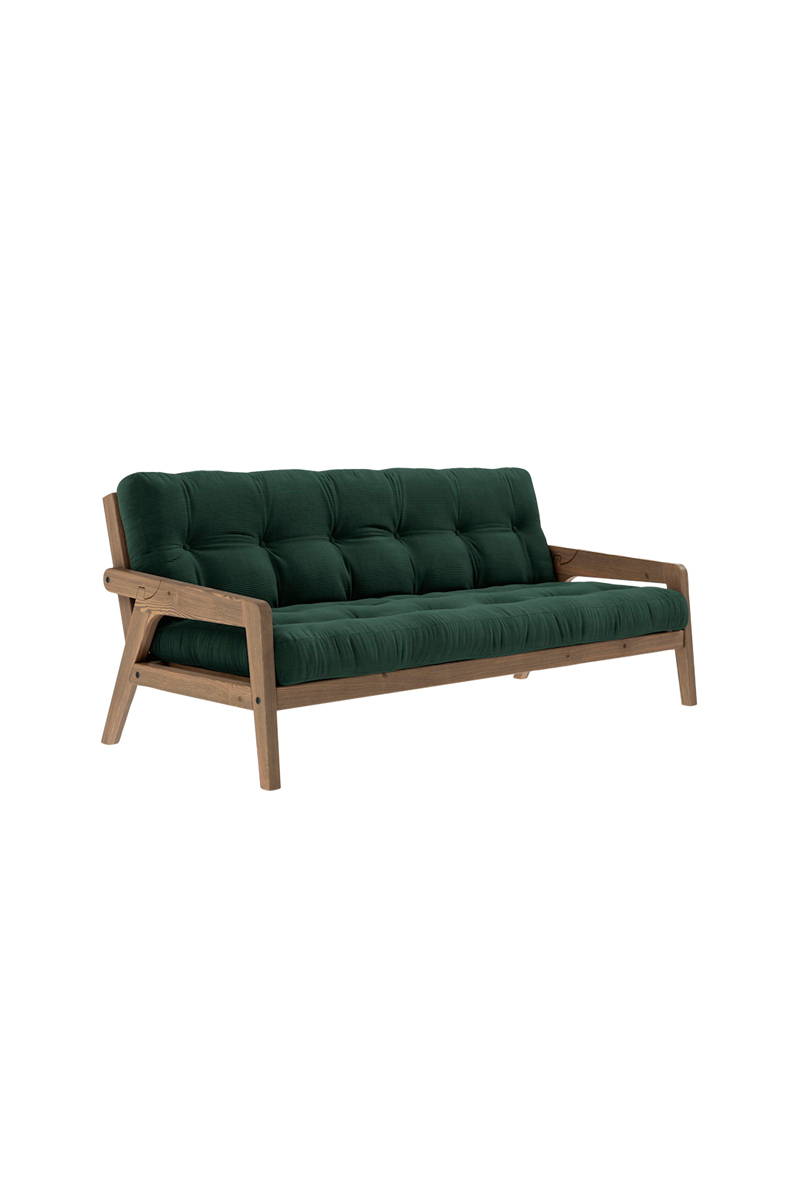 Jaa . Flip . Sleep grab on suunniteltu jaettavaksi - sekä tyylikkäänä sohvana että kokoontaitettuna kaksoissängyksi. Innovatiiviset käsinojat muuntuvat vaivattomasti sängyn takajalkoiksi yksinkertaisella kääntämisellä, mikä tekee siitä yhden helpoimmista saatavilla olevista sohvan ja sängyn muunnoksista. Mukavan futonpatjansa ansiosta grab takaa rentoutumisen, olitpa sitten loikoilemassa tai nukkumassa. Suunnitellut sanoo kuka, grab yhdistää käytännöllisyyden ja estetiikan saumattomasti. Huomaa: kaikki futon-tuotteemme ovat käsintehtyjä, minkä vuoksi niiden koossa ja painossa voi olla pieniä vaihteluita.