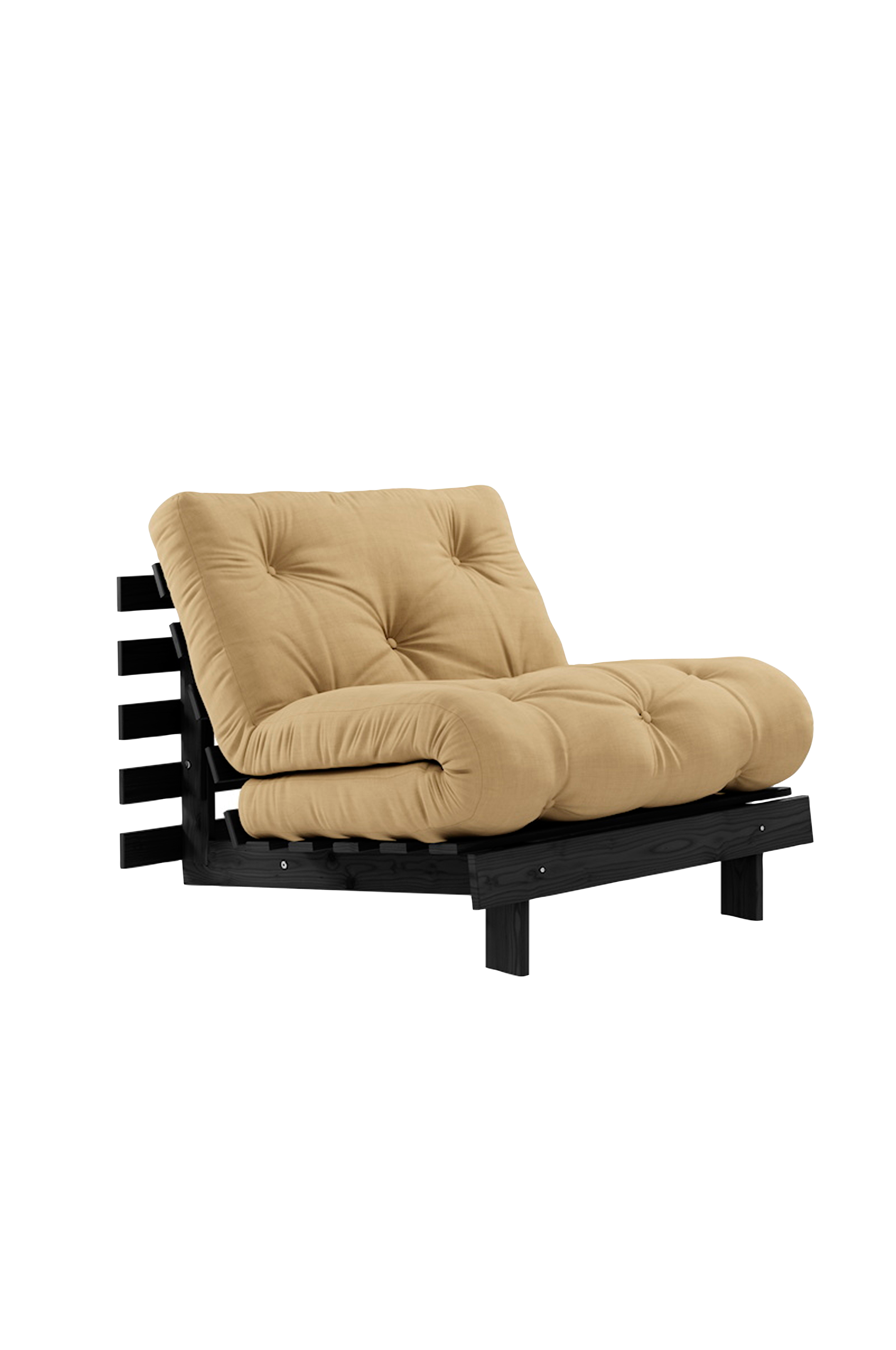 Ajaton kappale - roots 90 on karupin design-dna:n ydin: sohvan lisäksi saat sängyn ja mukavan lepotuolin. Kun lasket etujalat alas ja säädät selkänojan, saat mukavan lepotuolin. Laskemalla selkänojan kokonaan alas saat mukavan sängyn, jossa voit latautua maahan juurtuneena. Kaksinkertaistamalla selkänoja, taittamalla patjan yli, ja nyt sinulla on tavallisen korkuinen lepotuoli. Roots 90 muuntuu nopeasti ja helposti - aivan kuin taikaiskusta. Ymmärrätkö idean? Huomaa, että kaikki futon-tuotteemme ovat käsintehtyjä, joten saatat huomata pieniä eroja koossa ja painossa.