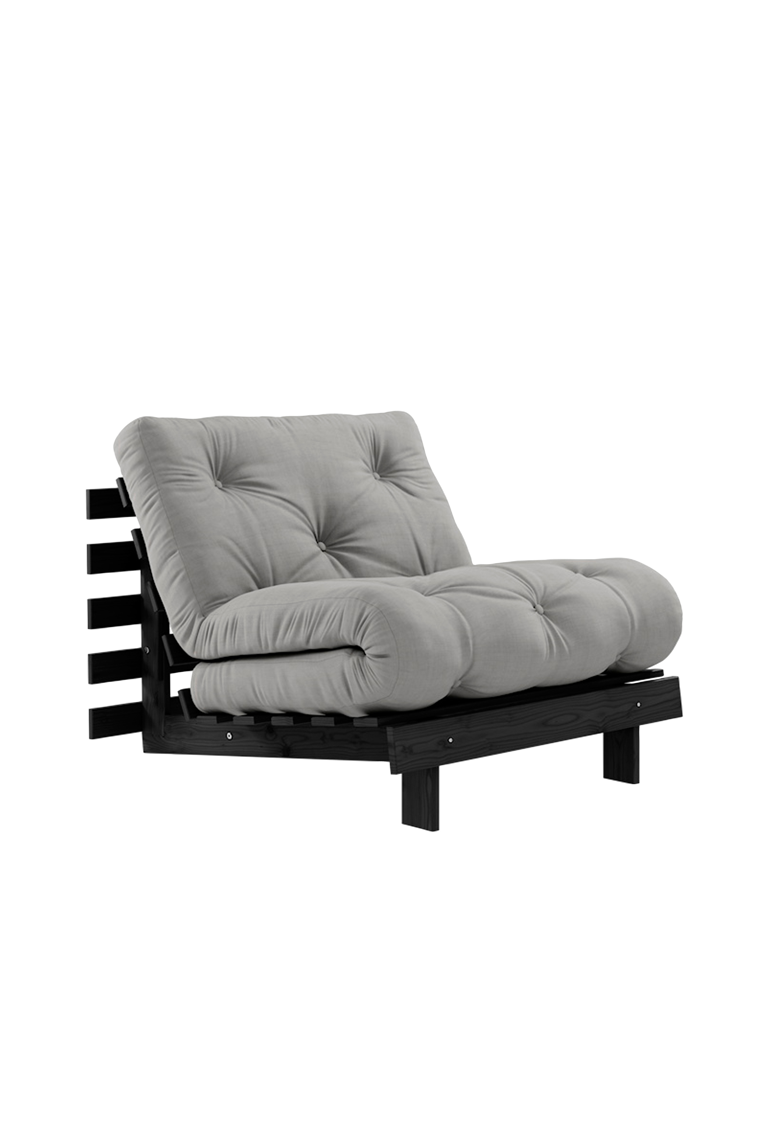 Ajaton kappale - roots 90 on karupin design-dna:n ydin: sohvan lisäksi saat sängyn ja mukavan lepotuolin. Kun lasket etujalat alas ja säädät selkänojan, saat mukavan lepotuolin. Laskemalla selkänojan kokonaan alas saat mukavan sängyn, jossa voit latautua maahan juurtuneena. Kaksinkertaistamalla selkänoja, taittamalla patjan yli, ja nyt sinulla on tavallisen korkuinen lepotuoli. Roots 90 muuntuu nopeasti ja helposti - aivan kuin taikaiskusta. Ymmärrätkö idean? Huomaa, että kaikki futon-tuotteemme ovat käsintehtyjä, joten saatat huomata pieniä eroja koossa ja painossa.