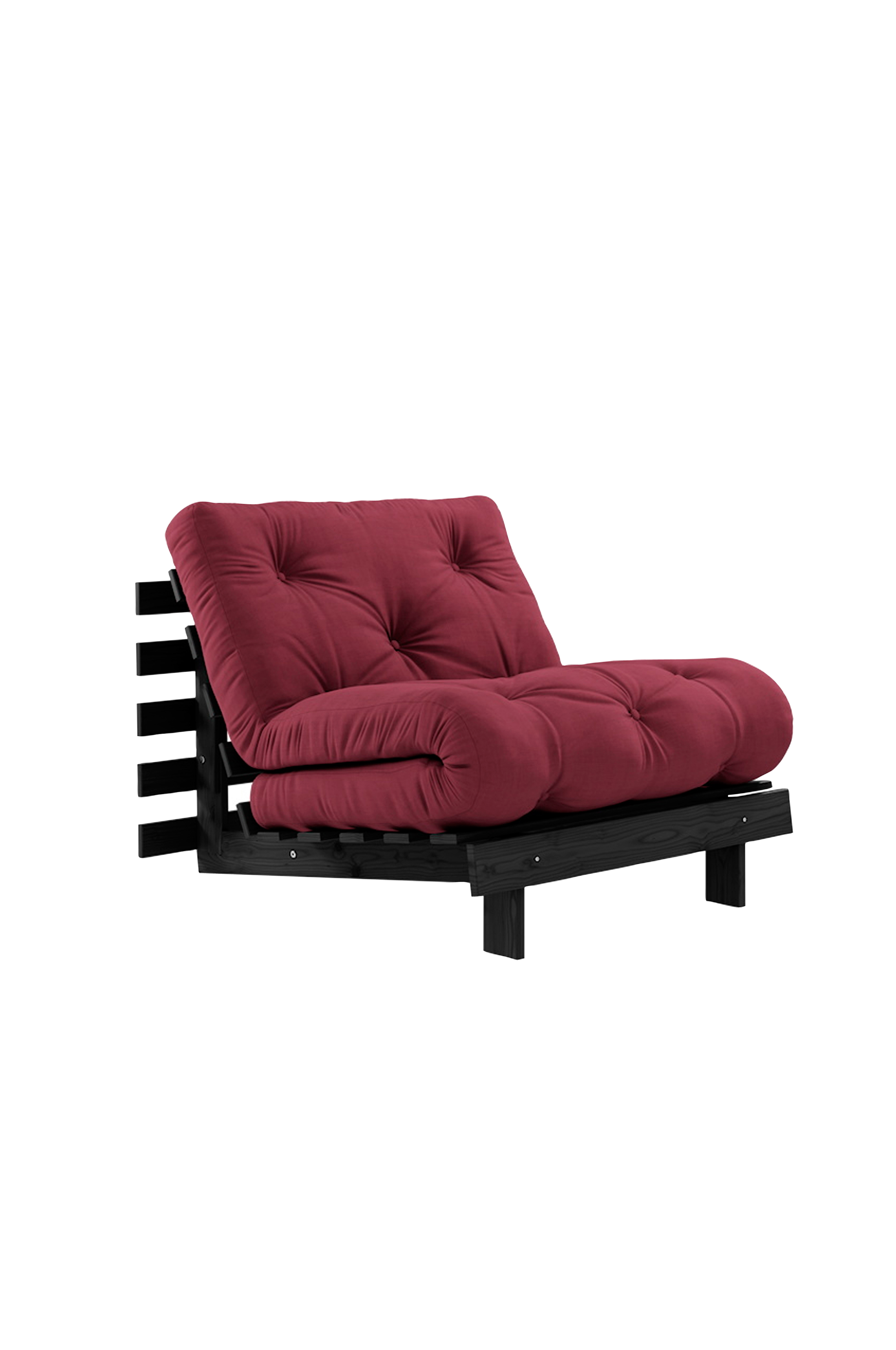Ajaton kappale - roots 90 on karupin design-dna:n ydin: sohvan lisäksi saat sängyn ja mukavan lepotuolin. Kun lasket etujalat alas ja säädät selkänojan, saat mukavan lepotuolin. Laskemalla selkänojan kokonaan alas saat mukavan sängyn, jossa voit latautua maahan juurtuneena. Kaksinkertaistamalla selkänoja, taittamalla patjan yli, ja nyt sinulla on tavallisen korkuinen lepotuoli. Roots 90 muuntuu nopeasti ja helposti - aivan kuin taikaiskusta. Ymmärrätkö idean? Huomaa, että kaikki futon-tuotteemme ovat käsintehtyjä, joten saatat huomata pieniä eroja koossa ja painossa.