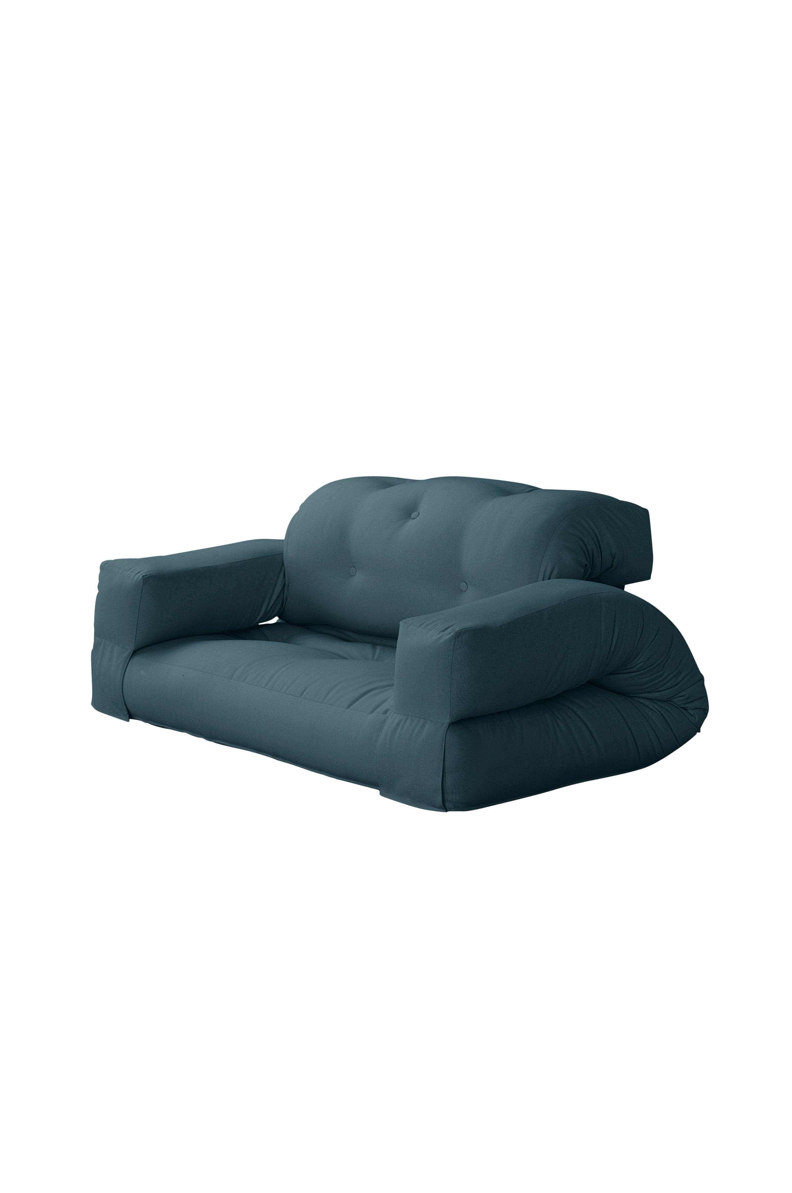 Share. Unstrap. Relax. - Hippo on mukava futonsohva, joka muuntuu kätevästi vuodepatjaksi. Irrottamalla sohvan takaosan ja nostamalla käsinojat ylös Hippo muuntuu tasaiseksi, paksuksi ja muhkeaksi vuodepatjaksi.
