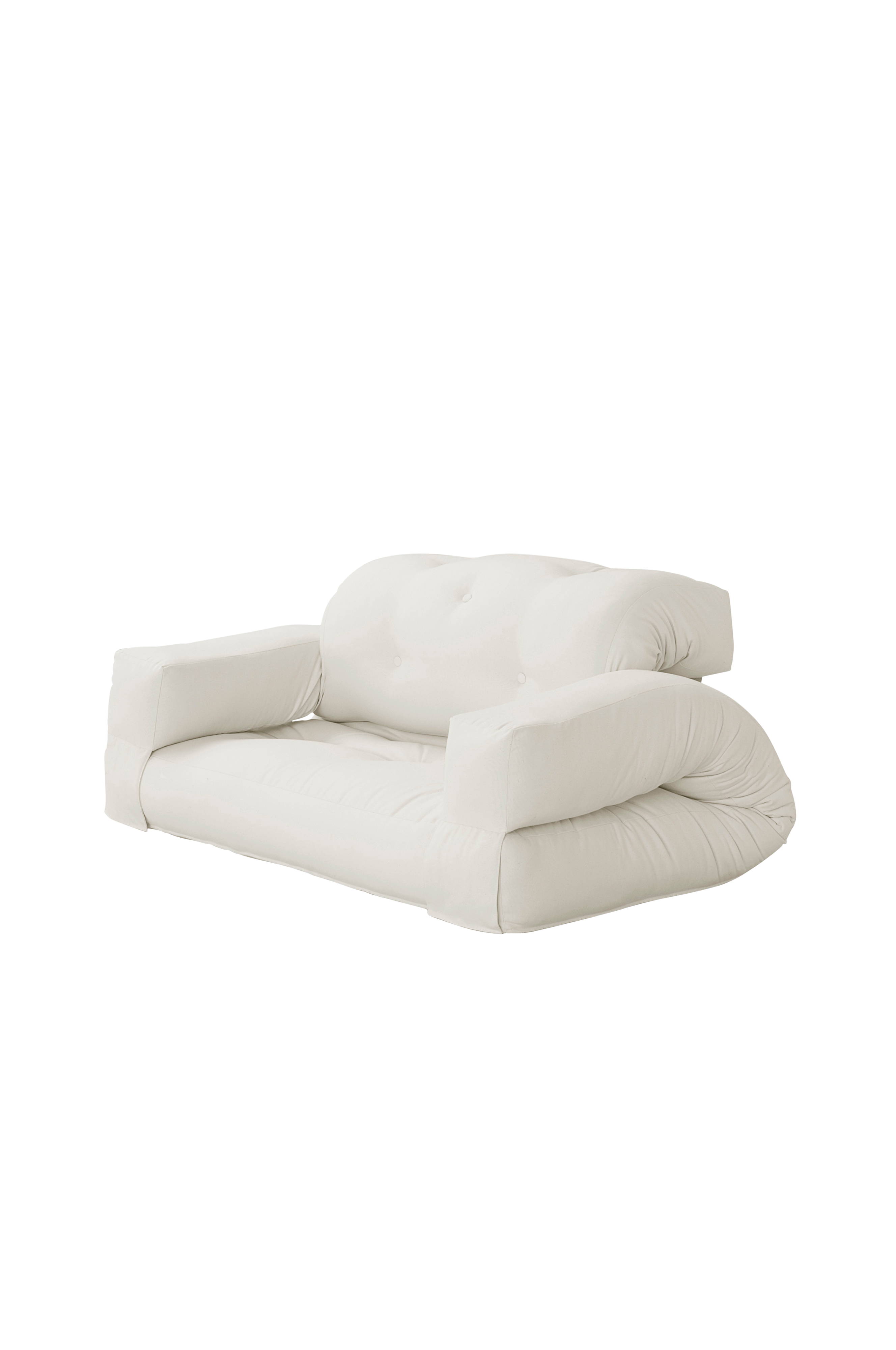 Share. Unstrap. Relax. - Hippo on mukava futonsohva, joka muuntuu kätevästi vuodepatjaksi. Irrottamalla sohvan takaosan ja nostamalla käsinojat ylös Hippo muuntuu tasaiseksi, paksuksi ja muhkeaksi vuodepatjaksi.