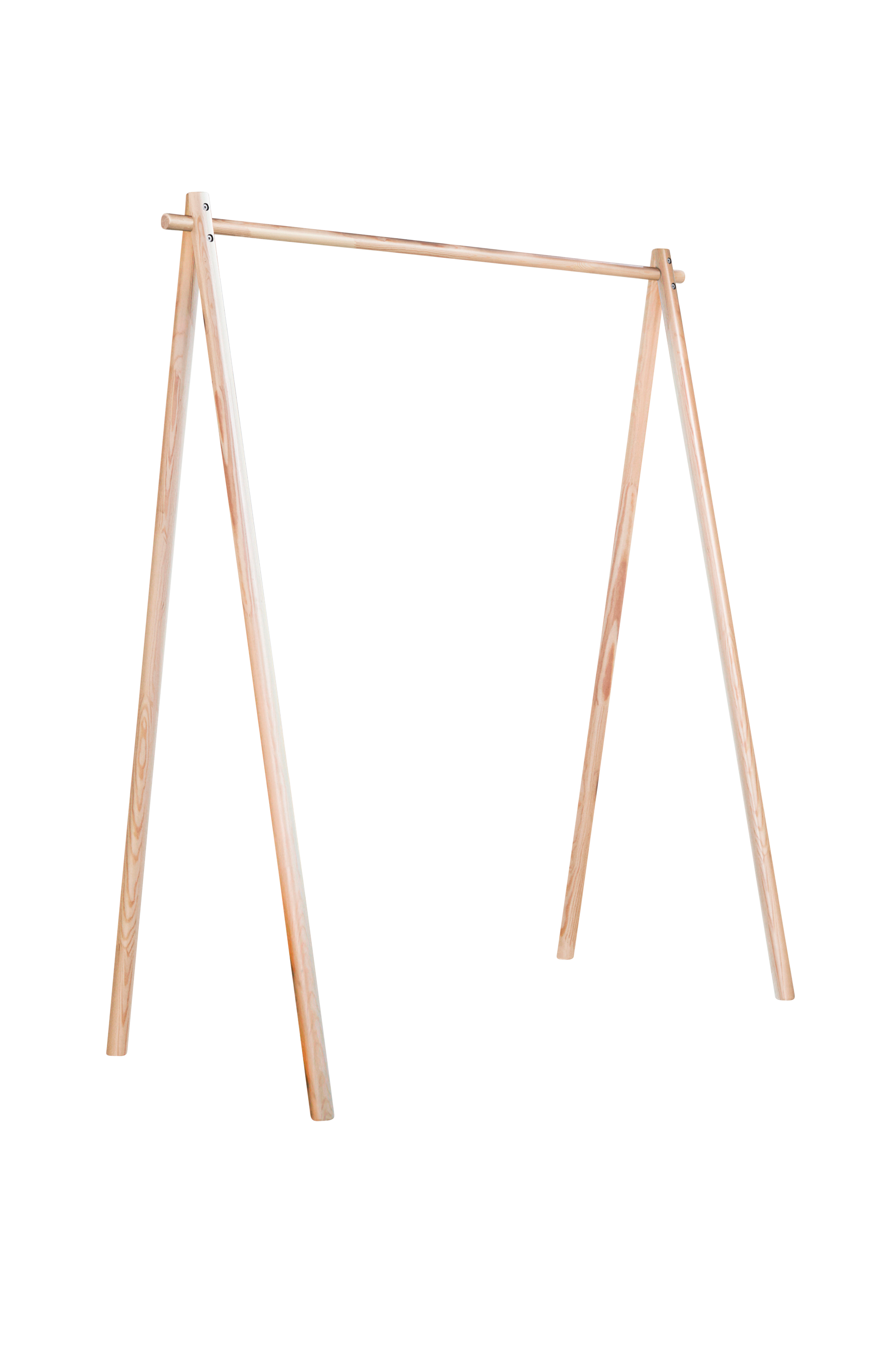 Hongi-vaatetangon ääressä tyylikkään asukokonaisuuden sommittelu käy kuin tanssi. Hongi toimii sisustuselementtinä ja avoimena vaatekomerona. Suunnitellut Anders Mørk tuotemerkille Karup Design.