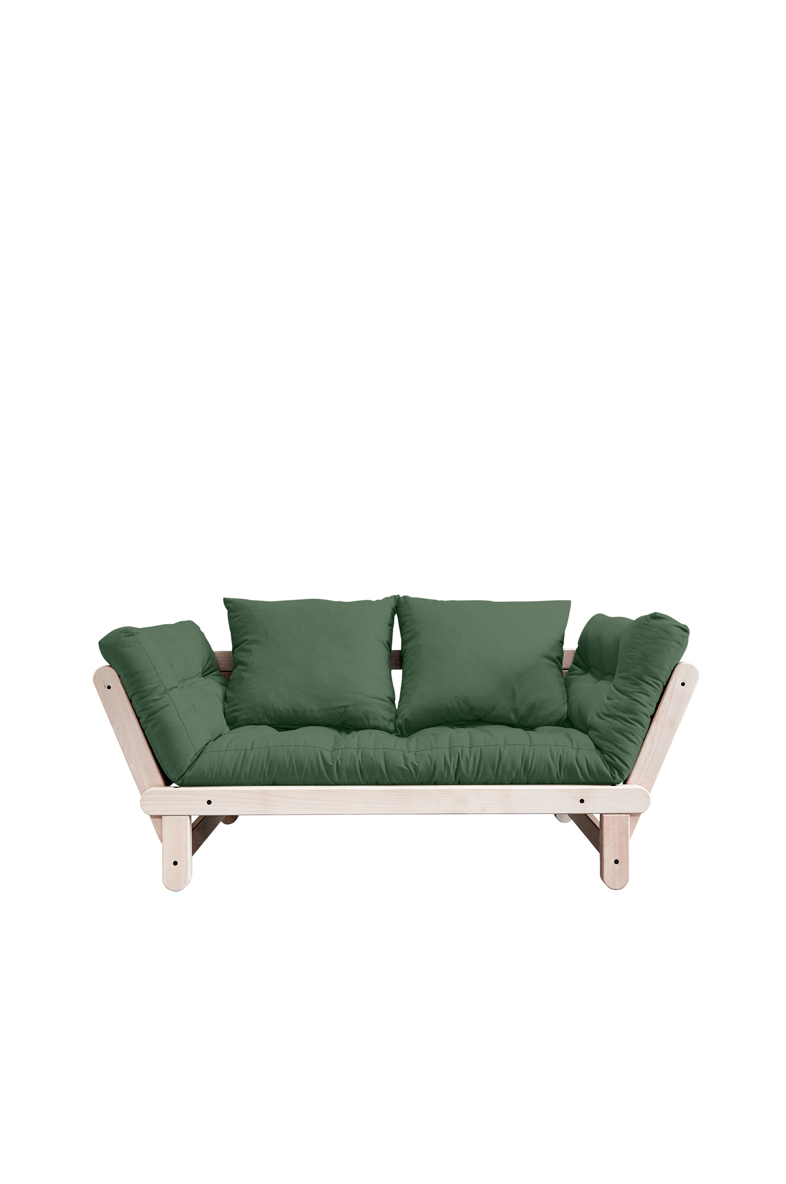 Lean. Read. Dream. - Beat-sohva tuo tuulahduksen pelkistettyä kauneutta tilaan kuin tilaan. Kun käsinojat ovat ylhäällä, laadukas futonpatja muodostaa kutsuvan pehmeän pesän, johon käpertyä yksin tai yhdessä. Kun toinen käsinoja lasketaan alas, sohva muuntuu käden käänteessä aurinkotuoliksi, johon on mukava ojentautua vaikkapa rentouttaville päivänokosille. Molemmat käsinojat alas laskettuina sohva toimii ainutlaatuisena yhden hengen vuoteena.