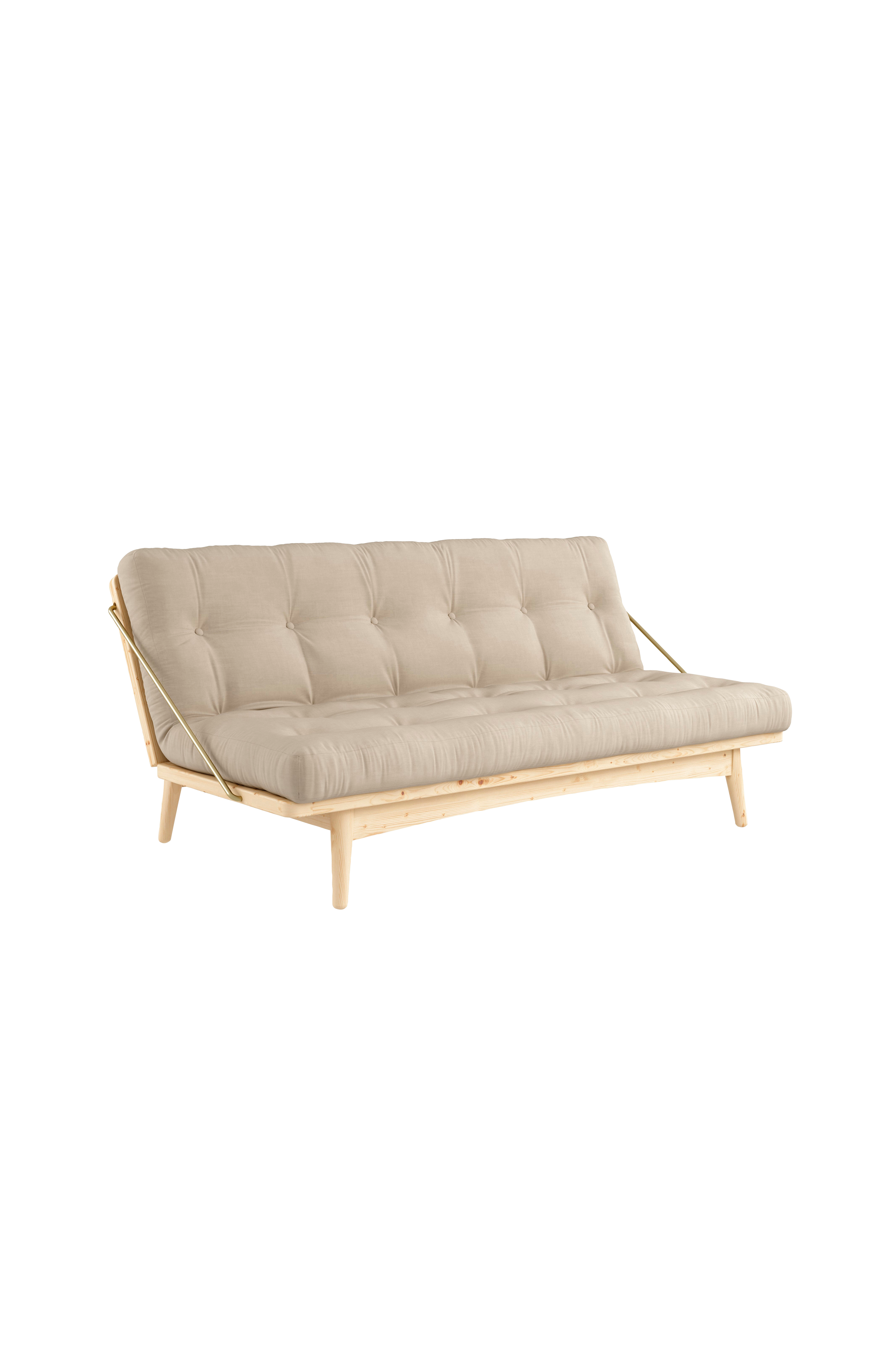Hyggeile. Rentoudu. Relax - Folk on yhdistelmä pyöristettyjä reunoja ja viileitä puhtaita linjoja. Runko on valmistettu FSC®-sertifioidusta massiivimännystä, ja sohva henkii yksinkertaista skandinaavista designia. Metallinen käsinoja on kontrasti rungon pehmeille linjoille ja kertoo, että Folk on paljon muutakin kuin vain mukava sohva. Folk-vuodesohva ei ole vain istumapaikka ystäville, vaan siitä voi myös tehdä kätevän vuoteen pieniin opiskelija-asuntoihin tai huoneisiin. Toimiva mutta elegantti. Käsinojasta vetämällä sohva muuttuu kahden hengen sängyksi.