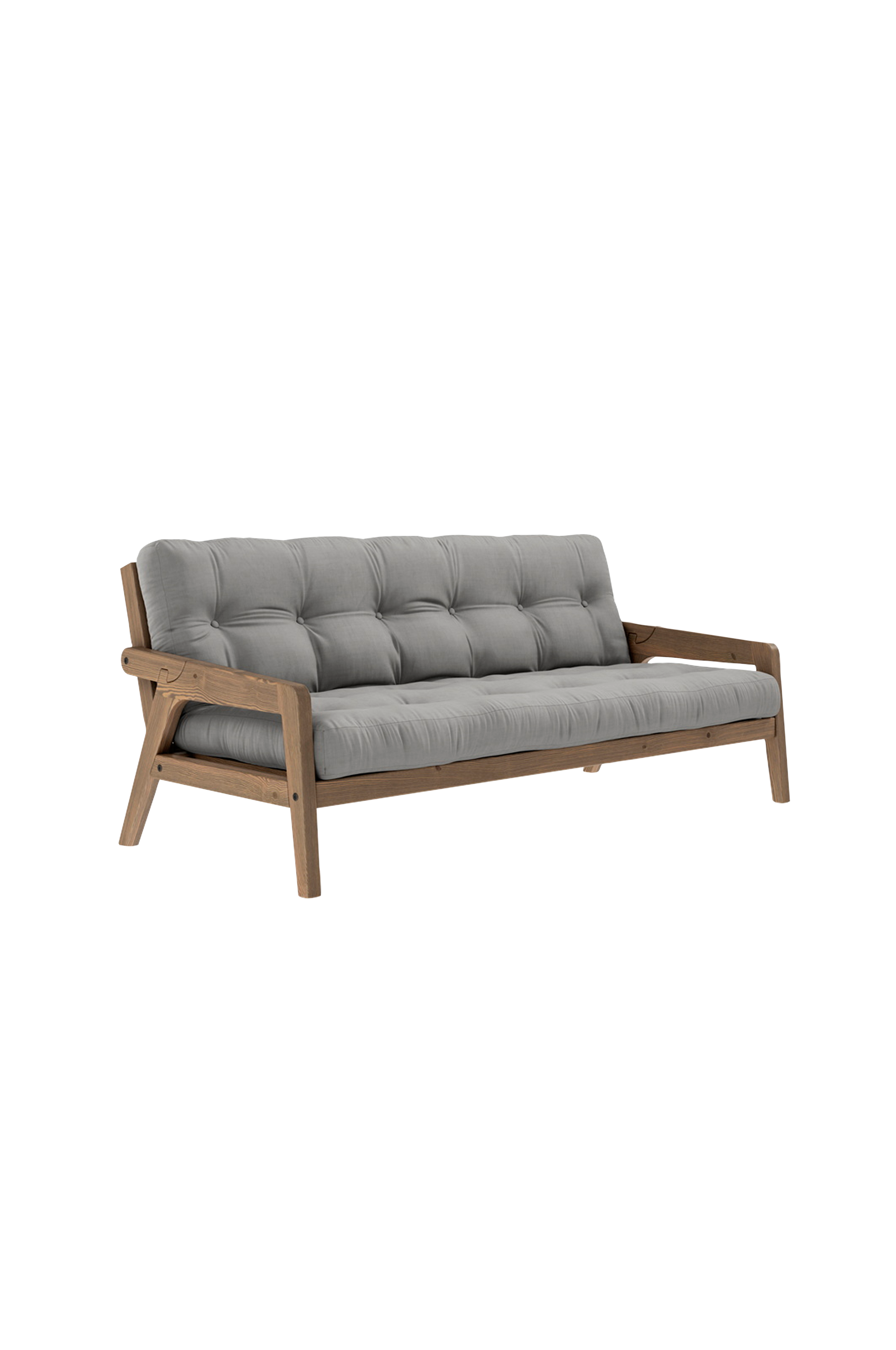 Jaa. Muuta. Grab-vuodesohva on tehty jaettavaksi. Toimii sohvana ja parivuoteena levitettynä. Käsinojat on suunniteltu helposti muunnettavaksi ja toimivat kääntämällä parivuoteen takajalkoina. Tämän kätevämpää vuodesohvamekanismia on tuskin koskaan nähty. Mukana mukava futonpatja. Suunnitellut Says Who tuotemerkille Karup Design.