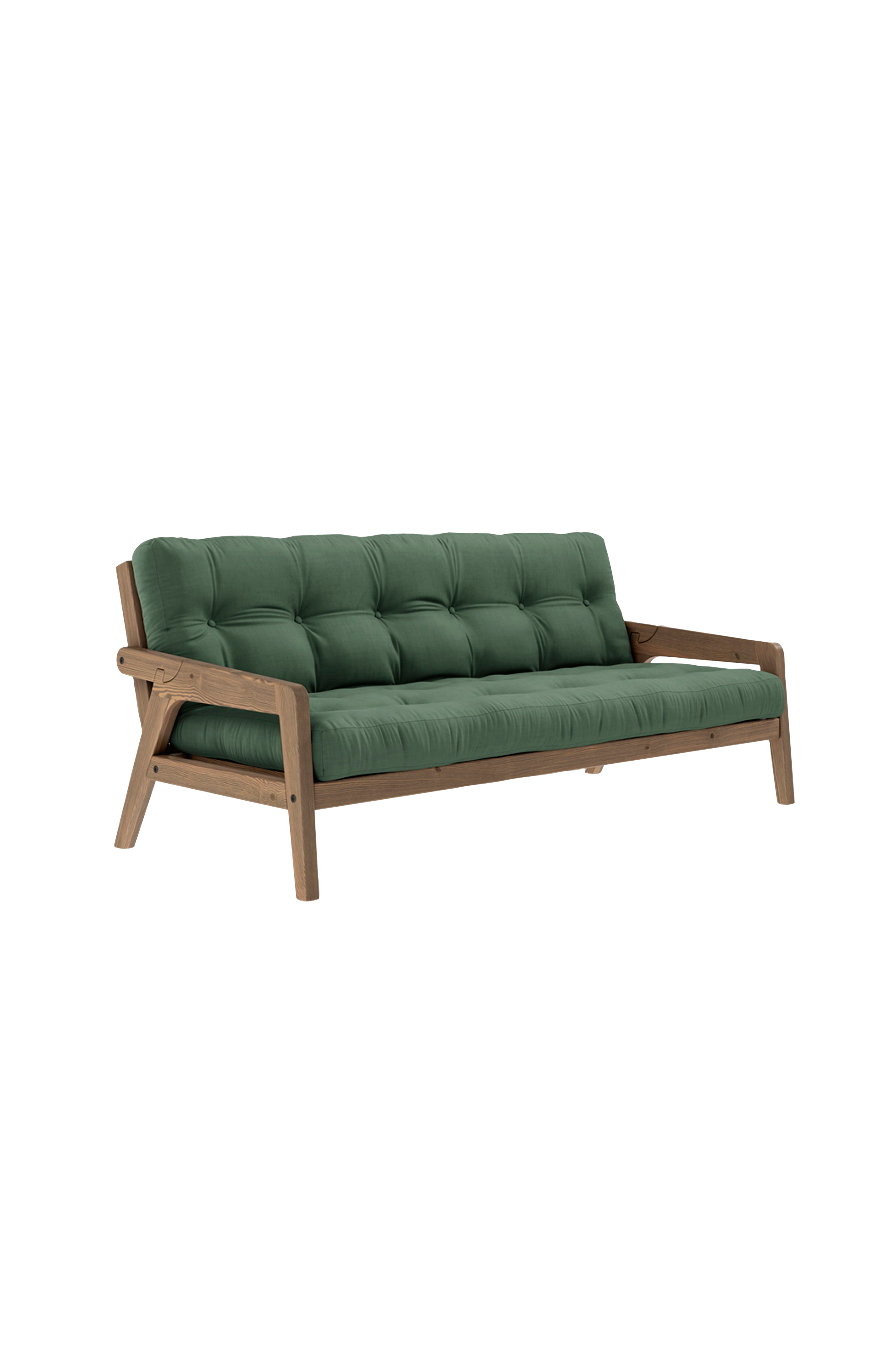Jaa. Muuta. Grab-vuodesohva on tehty jaettavaksi. Toimii sohvana ja parivuoteena levitettynä. Käsinojat on suunniteltu helposti muunnettavaksi ja toimivat kääntämällä parivuoteen takajalkoina. Tämän kätevämpää vuodesohvamekanismia on tuskin koskaan nähty. Mukana mukava futonpatja. Suunnitellut Says Who tuotemerkille Karup Design.