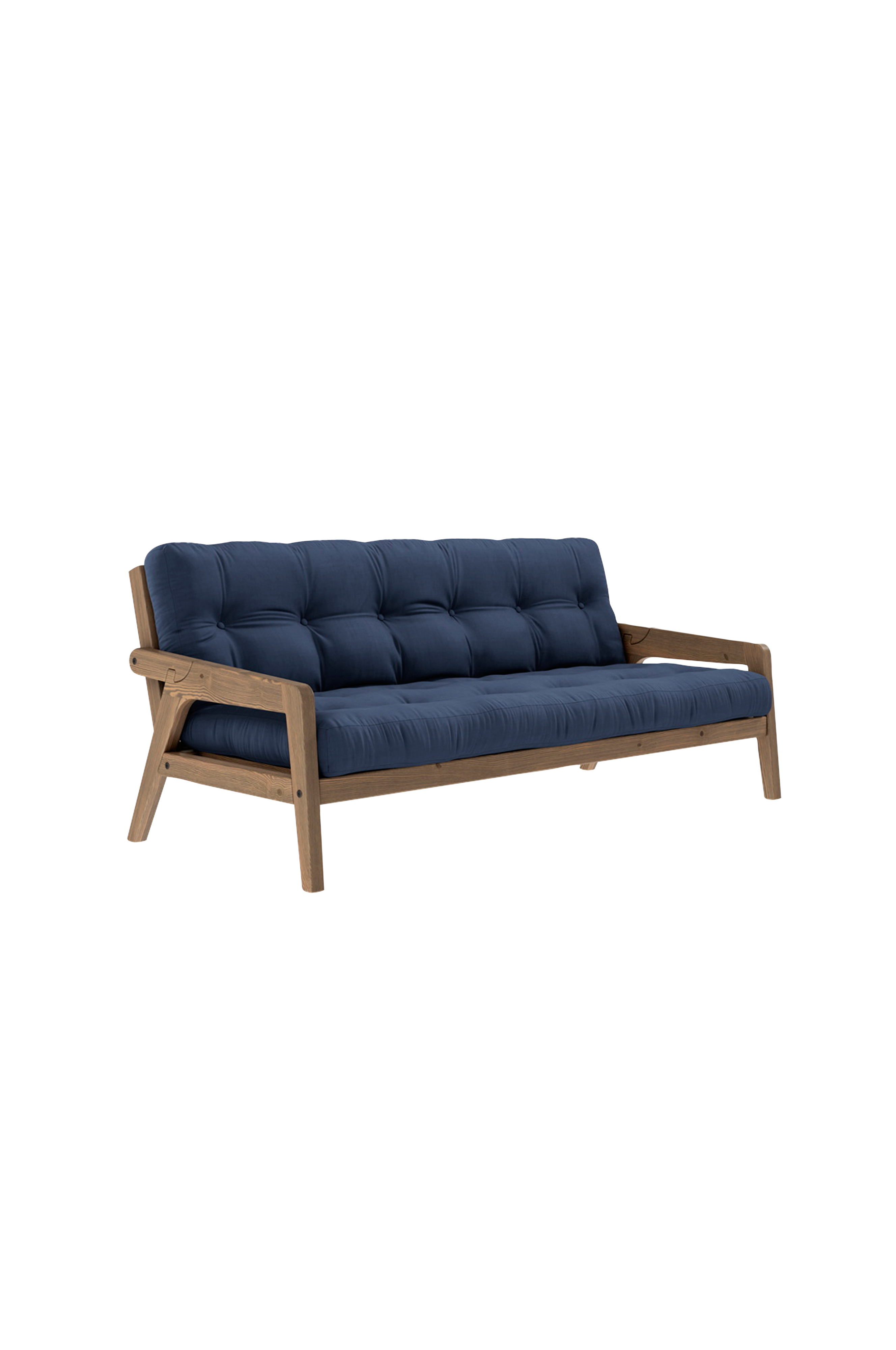 Jaa. Muuta. Grab-vuodesohva on tehty jaettavaksi. Toimii sohvana ja parivuoteena levitettynä. Käsinojat on suunniteltu helposti muunnettavaksi ja toimivat kääntämällä parivuoteen takajalkoina. Tämän kätevämpää vuodesohvamekanismia on tuskin koskaan nähty. Mukana mukava futonpatja. Suunnitellut Says Who tuotemerkille Karup Design.