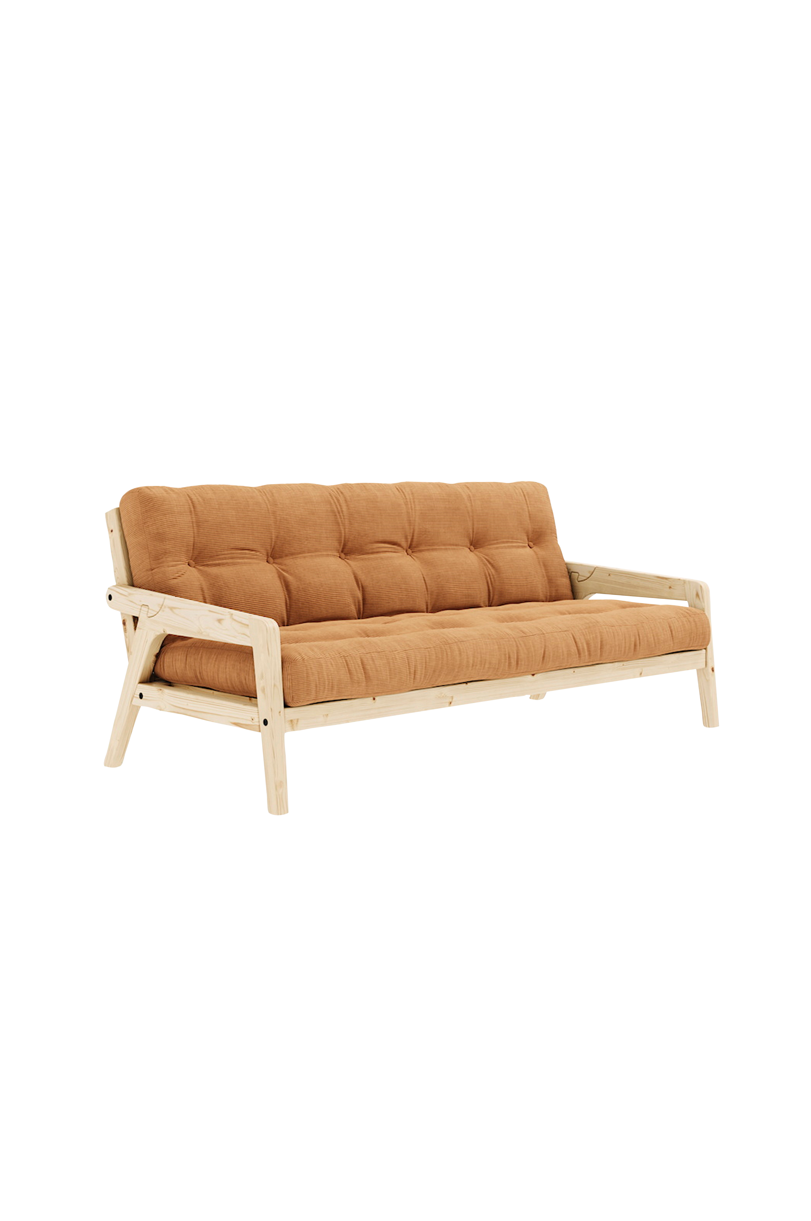 Jaa. Muunna. Lepää. Grab-vuodesohva on tehty jaettavaksi. Toimii sohvana ja parivuoteena levitettynä. Käsinojat on suunniteltu helposti muunnettavaksi ja toimivat kääntämällä parivuoteen takajalkoina. Tämän kätevämpää vuodesohvamekanismia on tuskin koskaan nähty. Mukana mukava futonpatja. Suunnitellut Says Who tuotemerkille Karup Design.