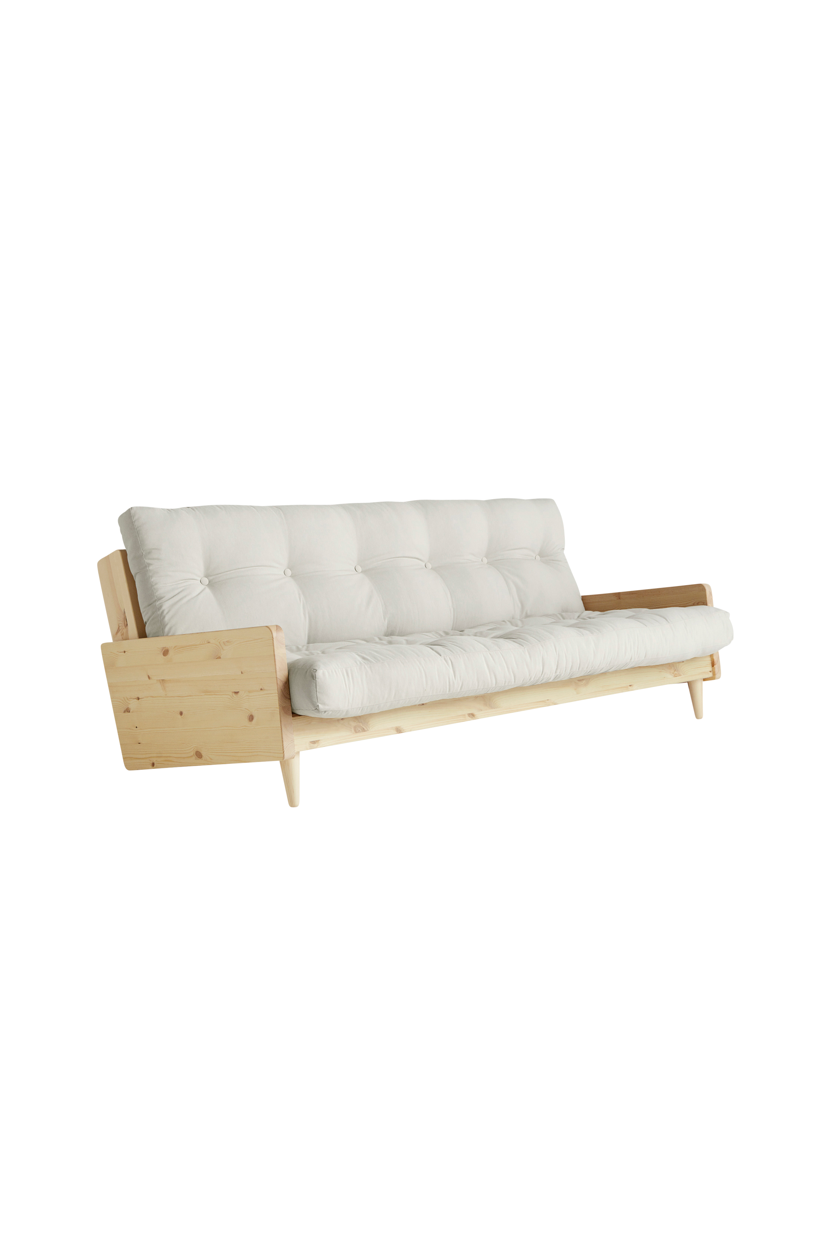 Read. Enjoy. Sleepover. - Näyttävine jalkoineen ja design-ominaisuuksineen Indie tuo moderniin kotiin retrohenkisen säväyksen. Indie-sohva on paitsi kaunis katsella myös mukava istua ja nukkua. Niin sohvana kuin täysikokoisena parivuoteenakin Indie tekee taatusti vaikutuksen. Indie-sohvassa on kevyestä massiivimännystä valmistettu runko ja käsintehty futonpatja. Helposti siirreltävä Indie sopii monenlaisiin tiloihin, joten voit vapaasti muunnella sisustusta. Ole rohkea. Anna tyylisi näkyä. Suunnitellut Says Who tuotemerkille Karup Design.