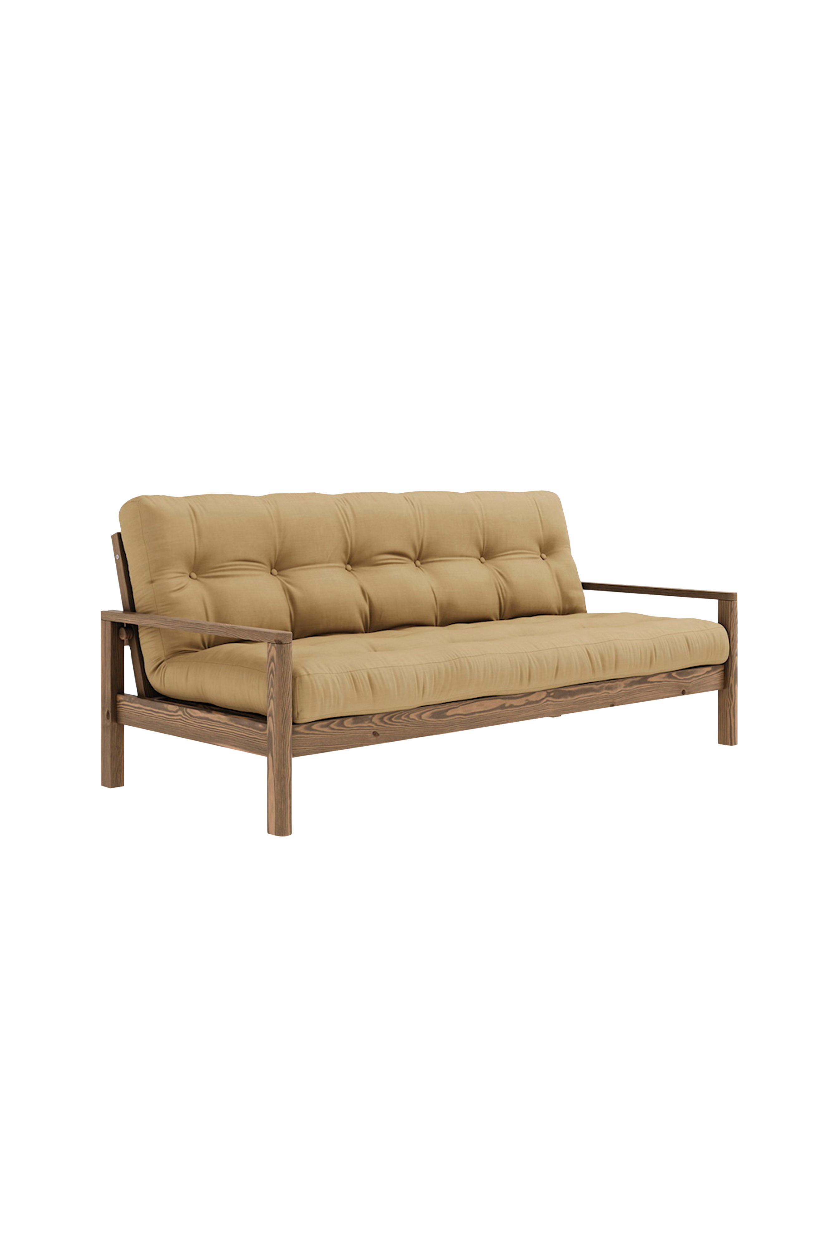 Kevyt. Muuntaa. Knob erottuu muista vuodesohvista kauniilla eleganssillaan. Tyylikäs ja kaunis vuodesohva antaa sisustukseen kevyen tunnelman, samalla kun se on käyttäjäystävällinen ja toimiva. Molempien käsinojien alla on helposti irti ruuvattava painike, joka muuntaa modernin sohvan mukavaksi sängyksi joko sinulle tai yövieraillesi.