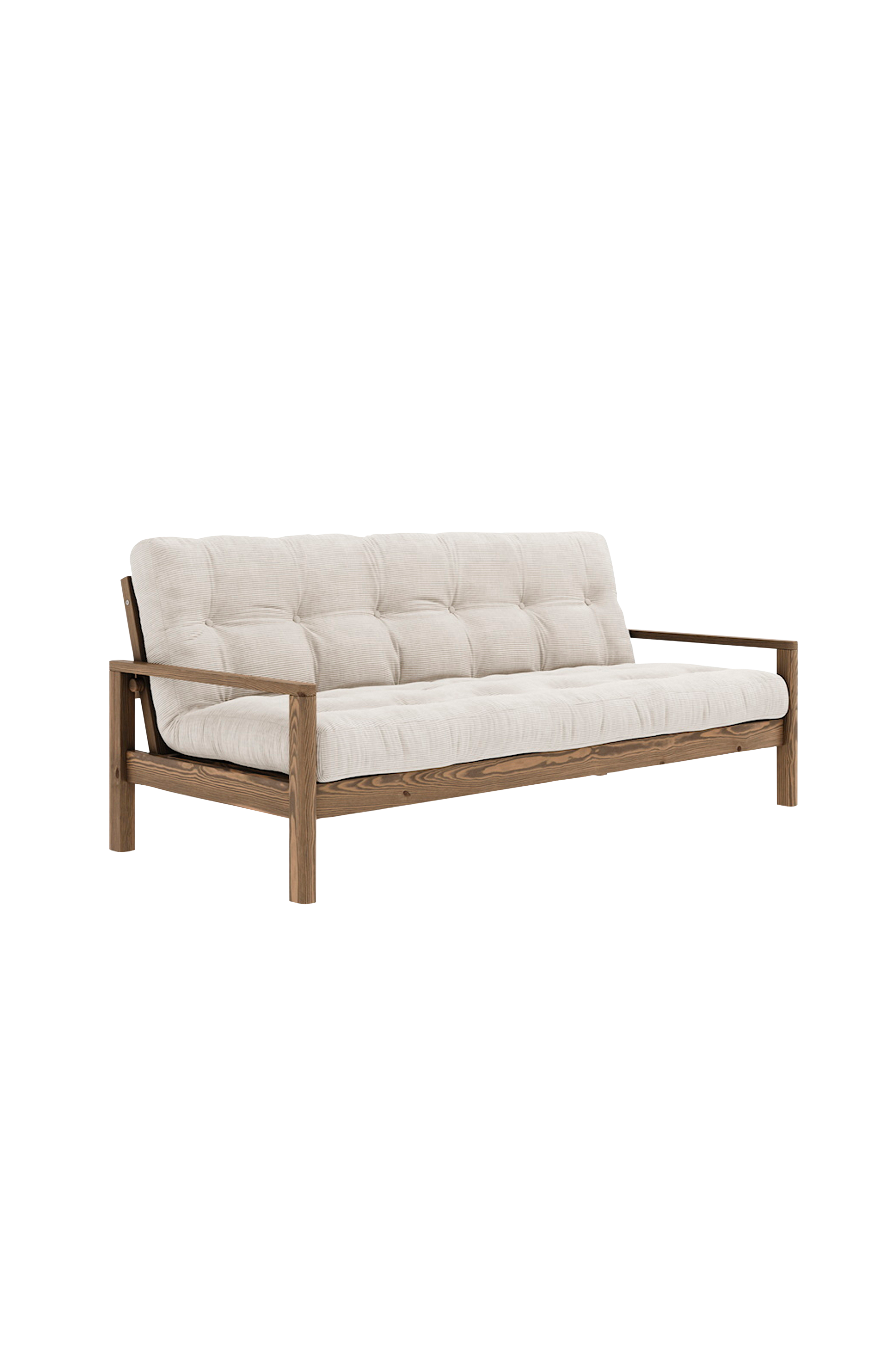 Kevyt. Muuntaa. Knob erottuu muista vuodesohvista kauniilla eleganssillaan. Tyylikäs ja kaunis vuodesohva antaa sisustukseen kevyen tunnelman, samalla kun se on käyttäjäystävällinen ja toimiva. Molempien käsinojien alla on helposti irti ruuvattava painike, joka muuntaa modernin sohvan mukavaksi sängyksi joko sinulle tai yövieraillesi.