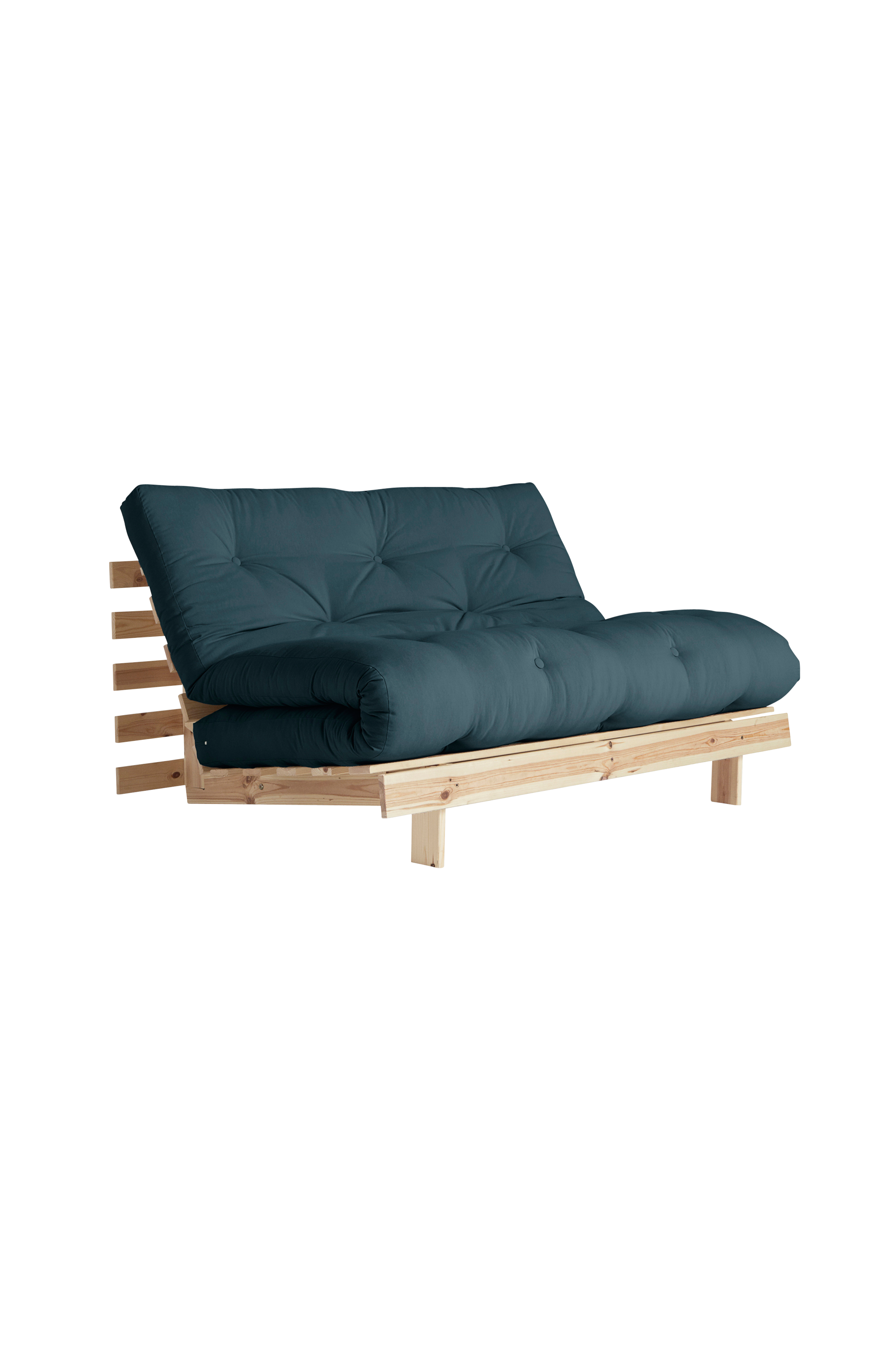 Roots 140 edustaa Karup Designin syvintä olemusta: Kun hankit sohvan, saat samalla myös sängyn ja mukavan loungetuolin. Taittamalla etujalat ja säätämällä selkänojaa saat mukavan loungetuolin. Laskemalla selkänojan kokonaan alas saat upean sängyn ja tunnet maan läheisyyden. Nosta selkänoja ylös ja taita patja, niin sänky muuntuu normaalikorkuiseksi loungetuoliksi. Roots 140 muuntuu nopeasti ja helposti - lähes taianomaisesti. Puuyksityiskohdat massiivimäntyä.