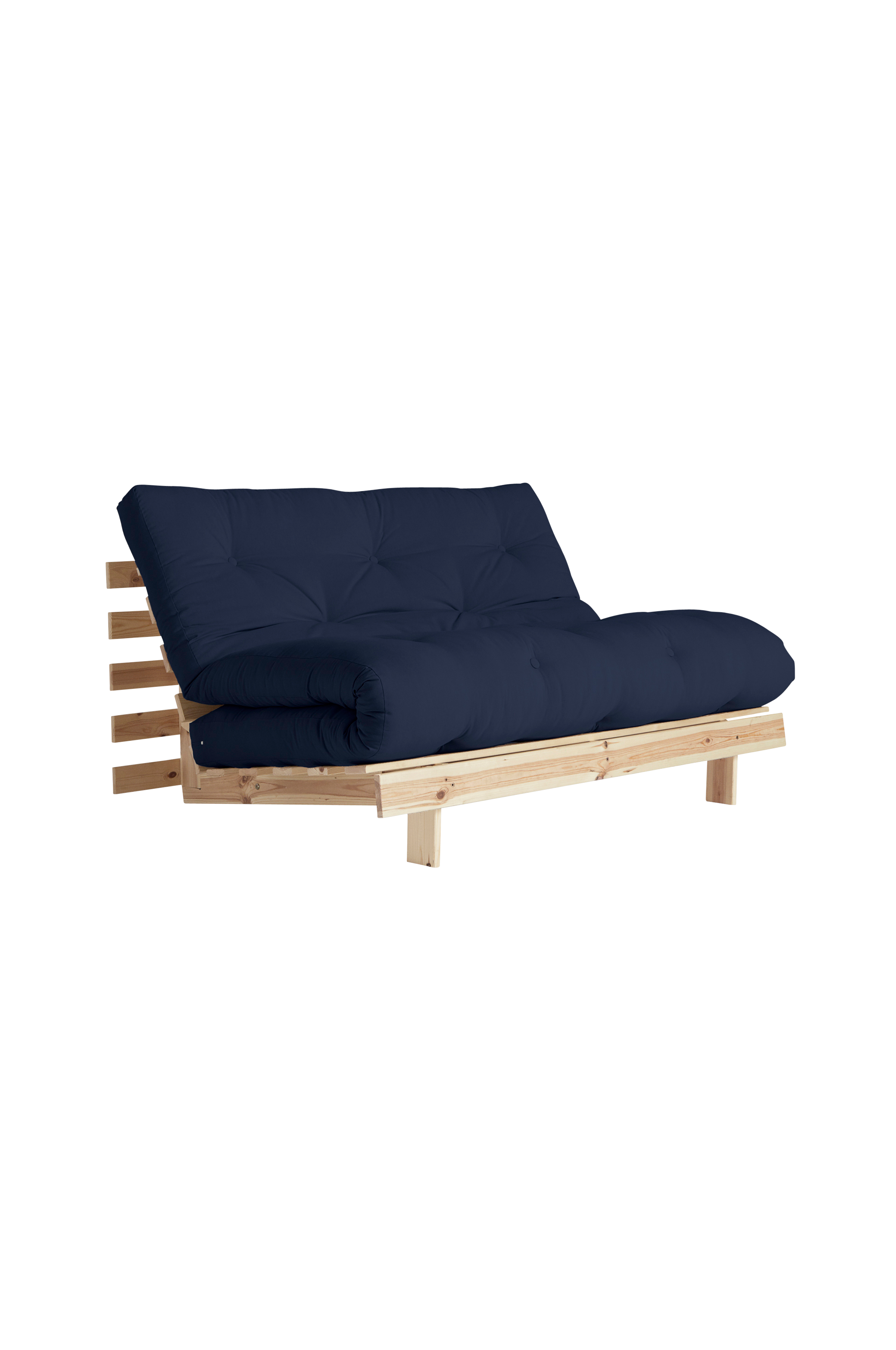 Roots 140 edustaa Karup Designin syvintä olemusta: Kun hankit sohvan, saat samalla myös sängyn ja mukavan loungetuolin. Taittamalla etujalat ja säätämällä selkänojaa saat mukavan loungetuolin. Laskemalla selkänojan kokonaan alas saat upean sängyn ja tunnet maan läheisyyden. Nosta selkänoja ylös ja taita patja, niin sänky muuntuu normaalikorkuiseksi loungetuoliksi. Roots 140 muuntuu nopeasti ja helposti - lähes taianomaisesti. Puuyksityiskohdat massiivimäntyä.