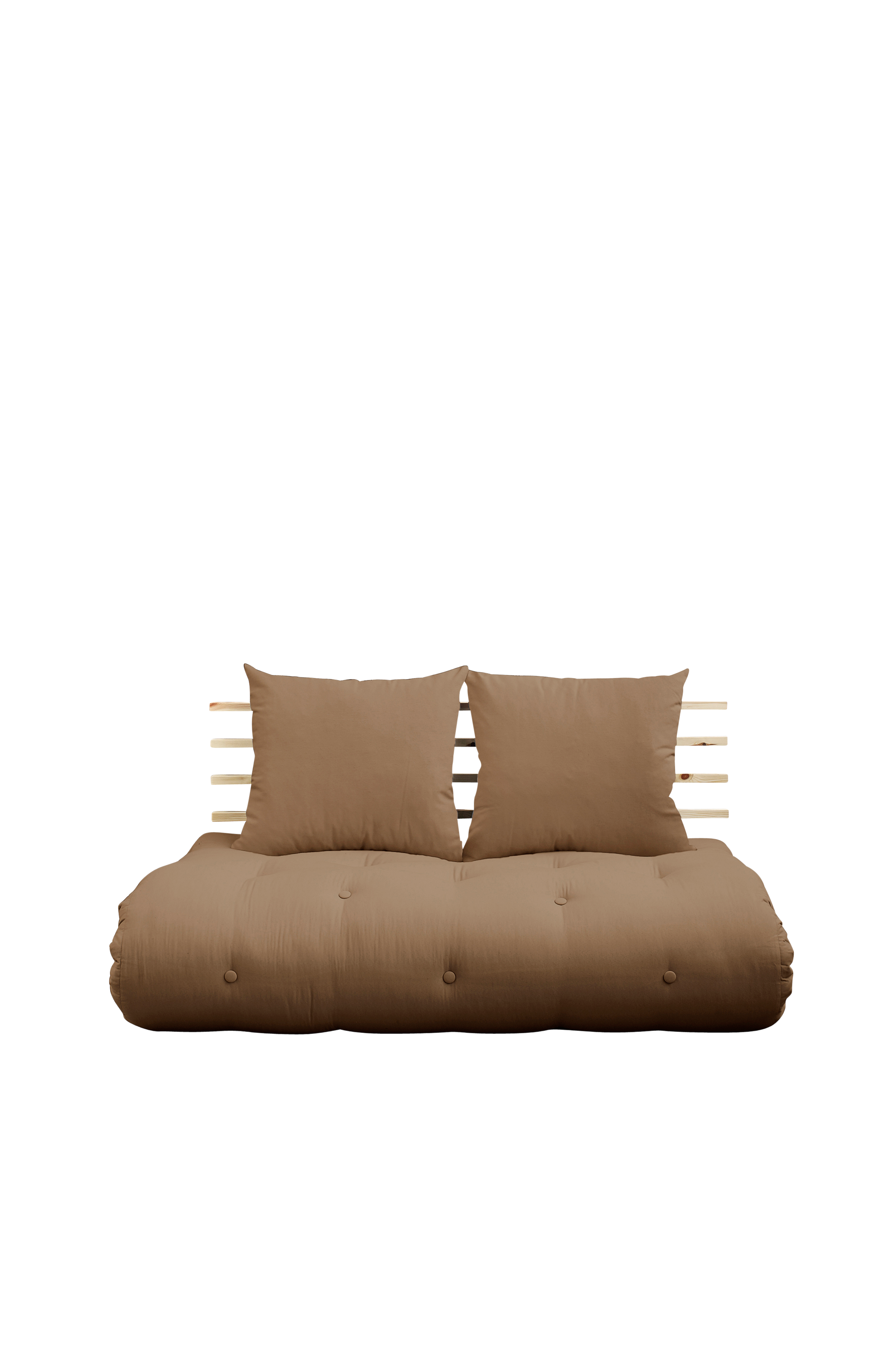 Sit. Unfold. Sleep. - Shin Sano koostuu muhkeasta futonpatjasta ja tyylikkäästä lamellirungosta. Kun levität futonin auki, saat hetkessä mukavan kahden hengen vierasvuoteen, jossa on sängynpääty ja kaksi pehmeää tyynyä. Shin Sano on myös oivallinen leposohva rentoihin koti-iltoihin.