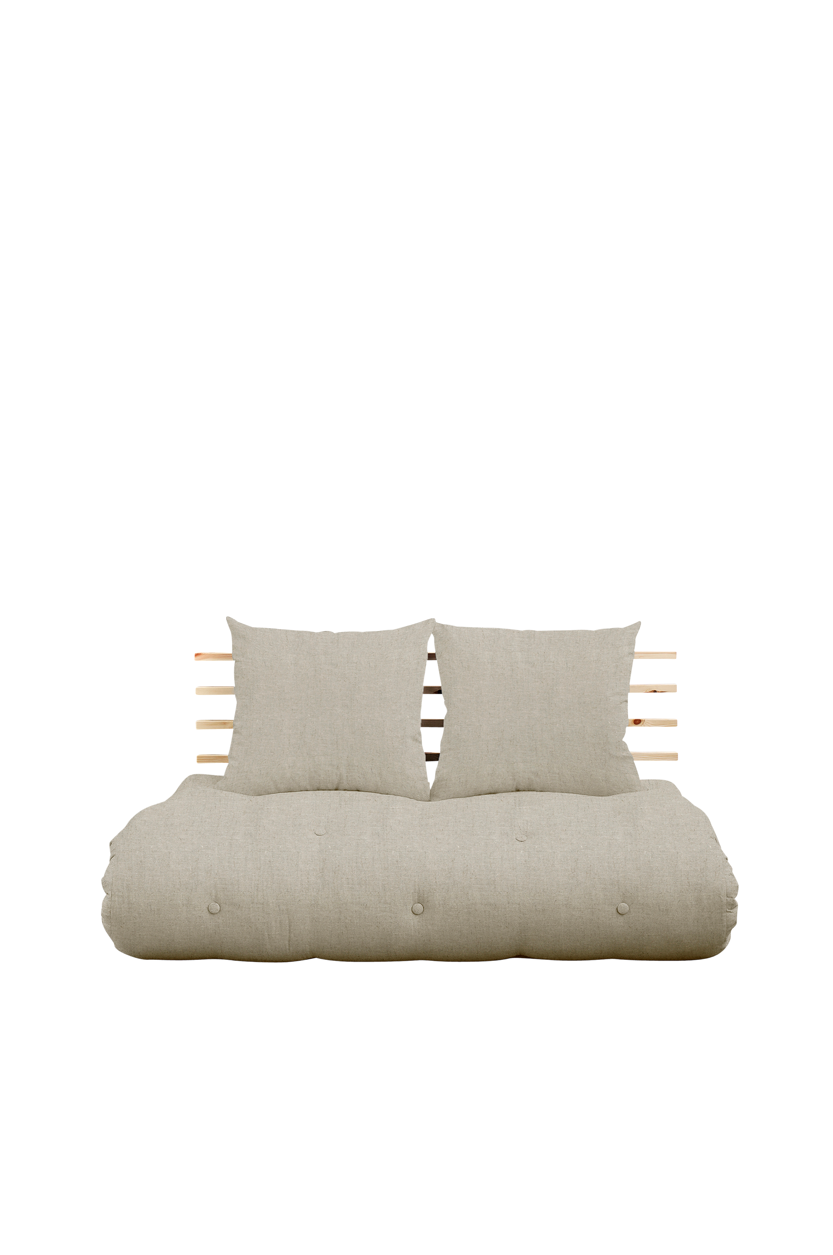 Sit. Unfold. Sleep. - Shin Sano koostuu muhkeasta futonpatjasta ja tyylikkäästä lamellirungosta. Kun levität futonin auki, saat hetkessä mukavan kahden hengen vierasvuoteen, jossa on sängynpääty ja kaksi pehmeää tyynyä. Shin Sano on myös oivallinen leposohva rentoihin koti-iltoihin.