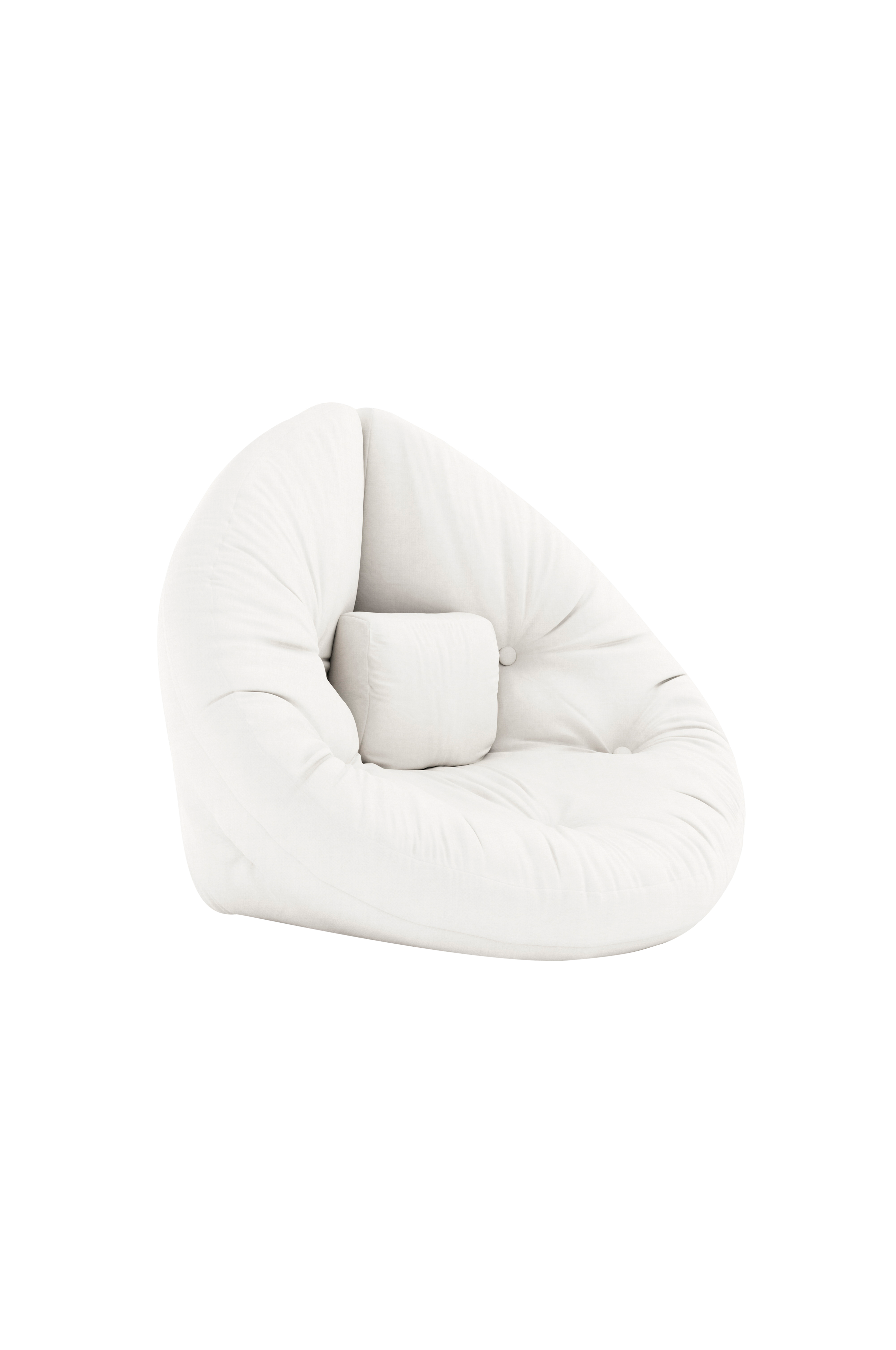 Read. Unstrap. Play. - Mini Nido on lasten ikioma leikki- ja olonurkkaus. Kun Mini Nido -tuolin taustapuolella olevat neljä tarranauhaa avataan, saadaan tuossa tuokiossa puolikuun muotoinen futonpatja päivänokosia, kaverin yökyläilyä tai leikkejä varten. Kaksi avattua Mini Nido -patjaa voidaan yhdistää kutsuvaksi pyöreäksi vuoteeksi, kun on aika rauhoittua. Tuolin ovat suunnitelleet Anders Backe, Anne-Sofie Voss, Ida Sofie Lange, Lars Wigh ja Troels Rask Pedersen tuotemerkille Karup Design.