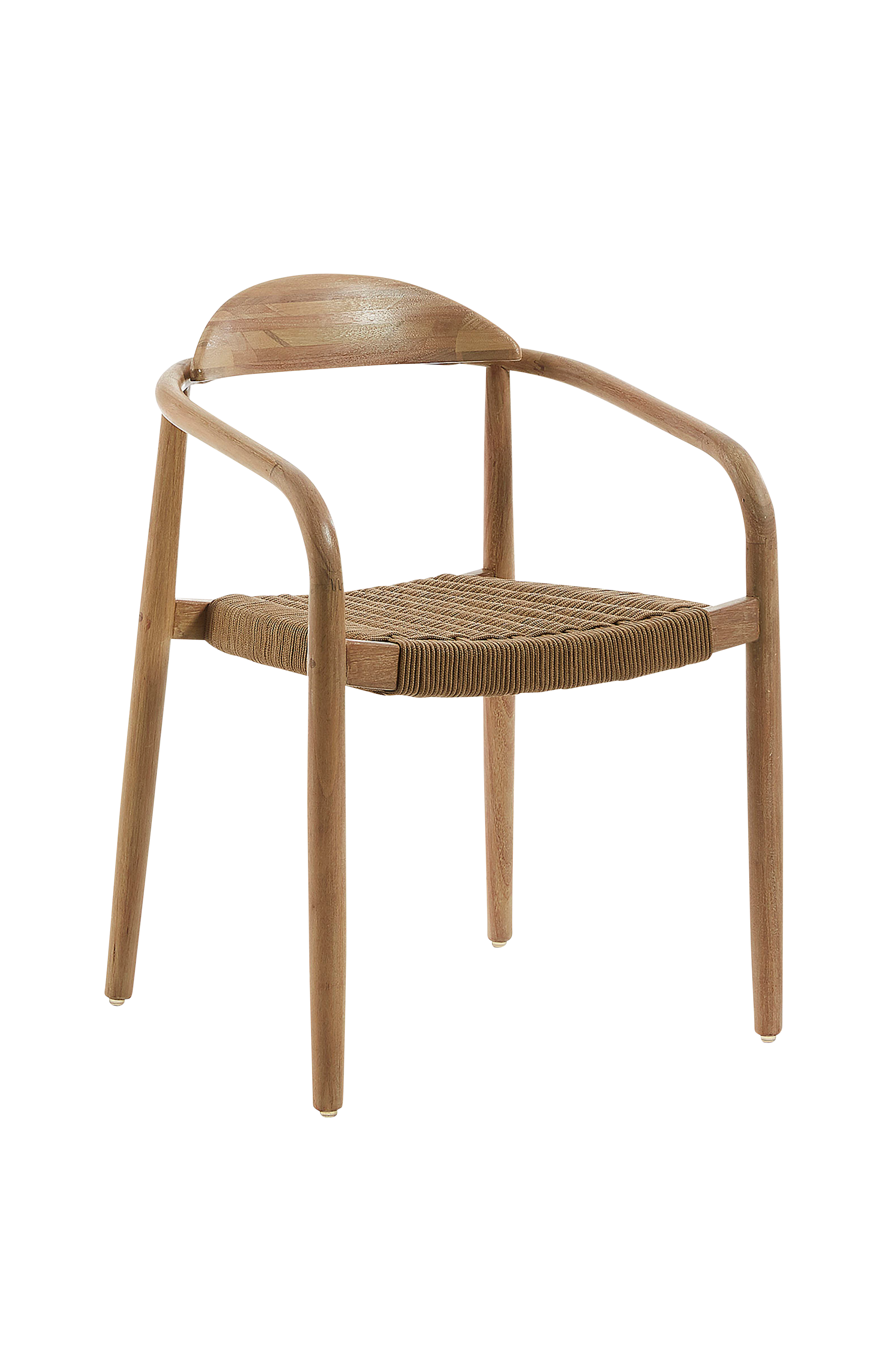 Käsinojallinen tuoli, jonka runko eukalyptuspuuta. Nano-öljy ja PNZ-pinnoite antavat pitkäkestoisen UV-suojan ja parantavat tuolin kestävyyttä. Istuin UV-suojattua polyesterinarua. Sisäkäyttöön sekä ulkokäyttöön katoksen alla. Korkeus 77 cm, leveys 57 cm, syvyys 53 cm. Istuinkorkeus 47 cm.