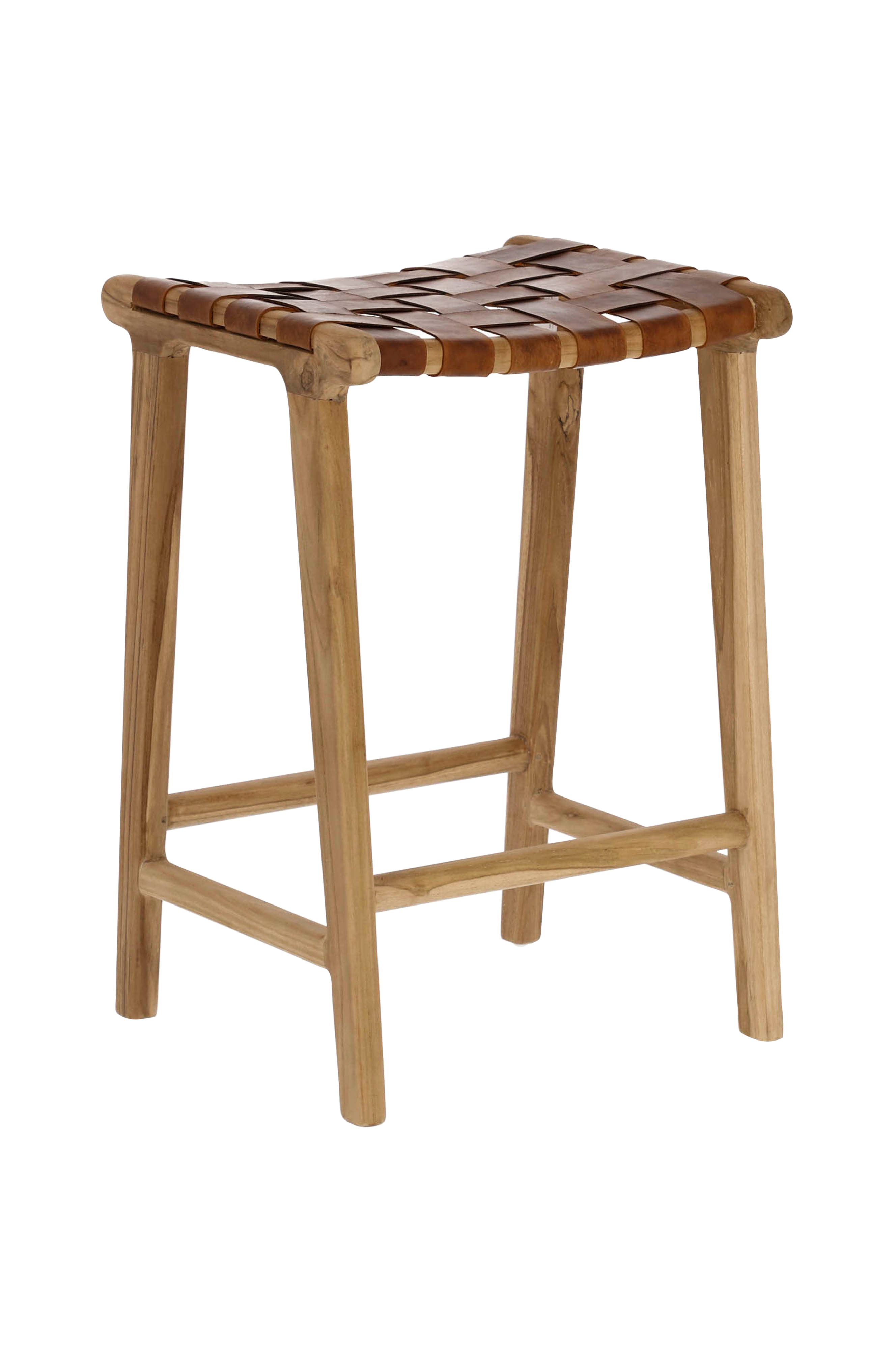 Calixta-jakkaran istuinkorkeus on 67 cm, ja sen istuin on punottu käsin ruskeista nahkanauhoista. Tyylikäs jakkara sopii kaikkialle kotiin ja myös kotibaariin. Runko massiivista tiikkiä. Tyylikäs huonekalu kestää käytössä vuodesta toiseen. Jokaisella luonnonmateriaalista valmistetulla jakkaralla on oma sävynsä ja pintakuvionsa, jonka ansiosta jokainen tuote on ylellinen ja ainutlaatuinen. Mikäpä olisi tyylikkäämpää kuin nahka? Leveys: 45 cm. Syvyys: 40 cm. Korkeus: 67 cm.